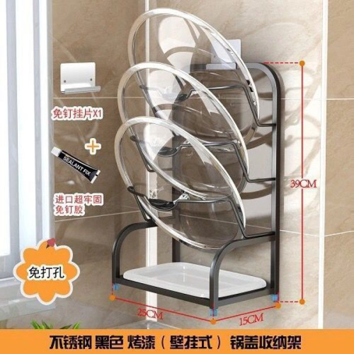 304不鏽鋼鍋蓋架廚房家用壁掛免打孔鍋蓋收納架分層台放置物架子