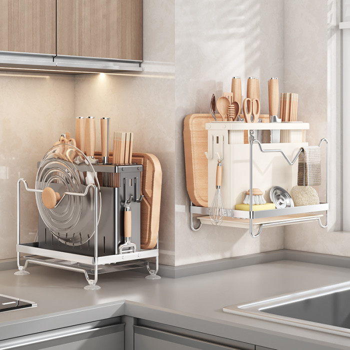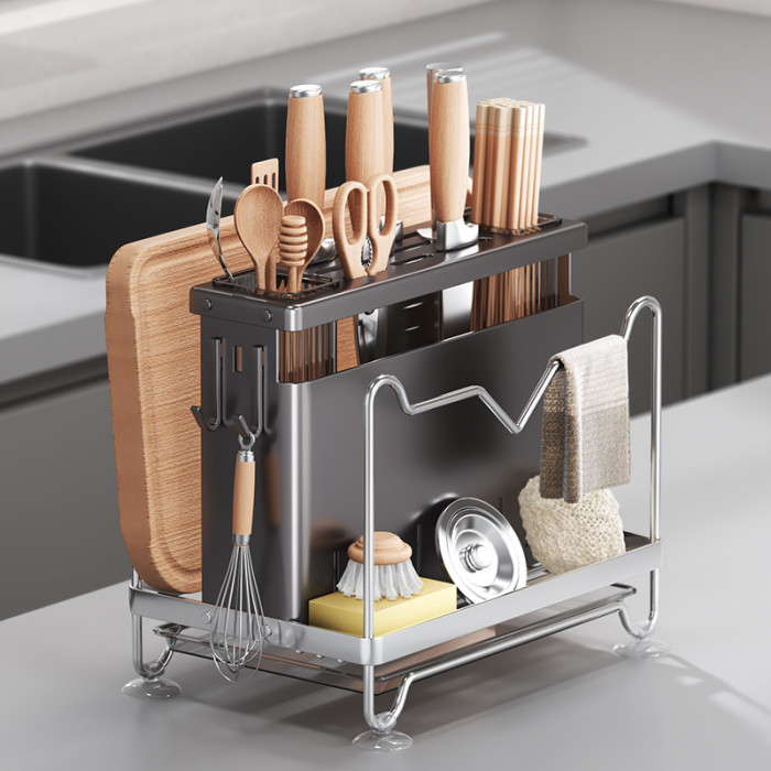 新品爆款不鏽鋼多功能刀架置物架壁掛家用筷子筒廚房瀝水瀝掛