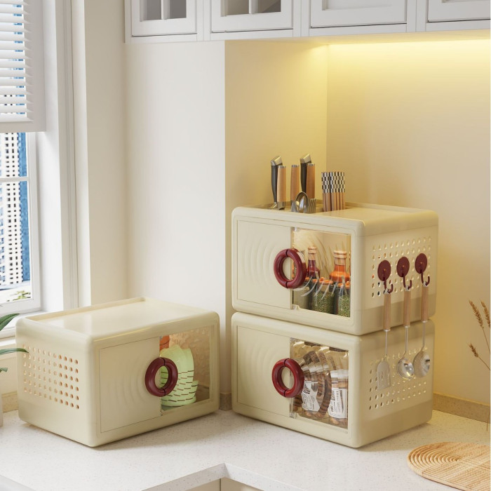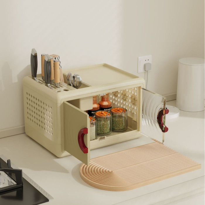 廚房置物架簡約分格收納盒雙開門收納架透氣多功能一體刀具收納箱