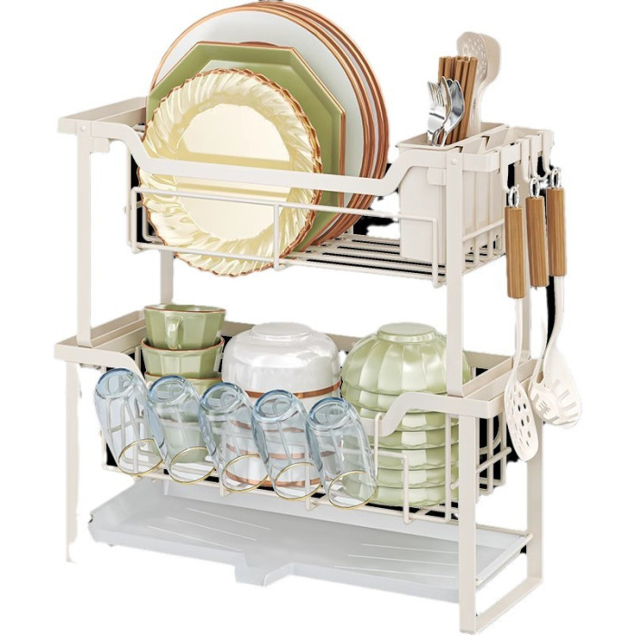 雙層窄款碗碟架+刀架+砧板架+筷筒*白色