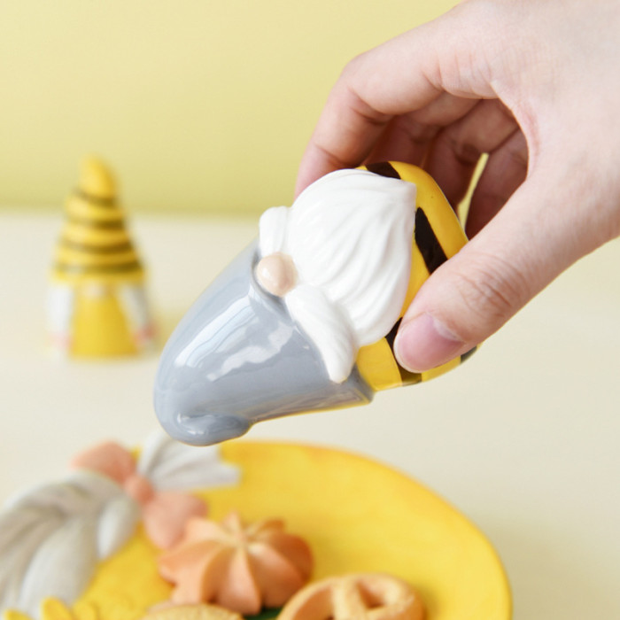 陶瓷椒鹽瓶創意蜜蜂精靈鬍椒瓶高顔值擺件浮雕可裝飾向日葵精靈