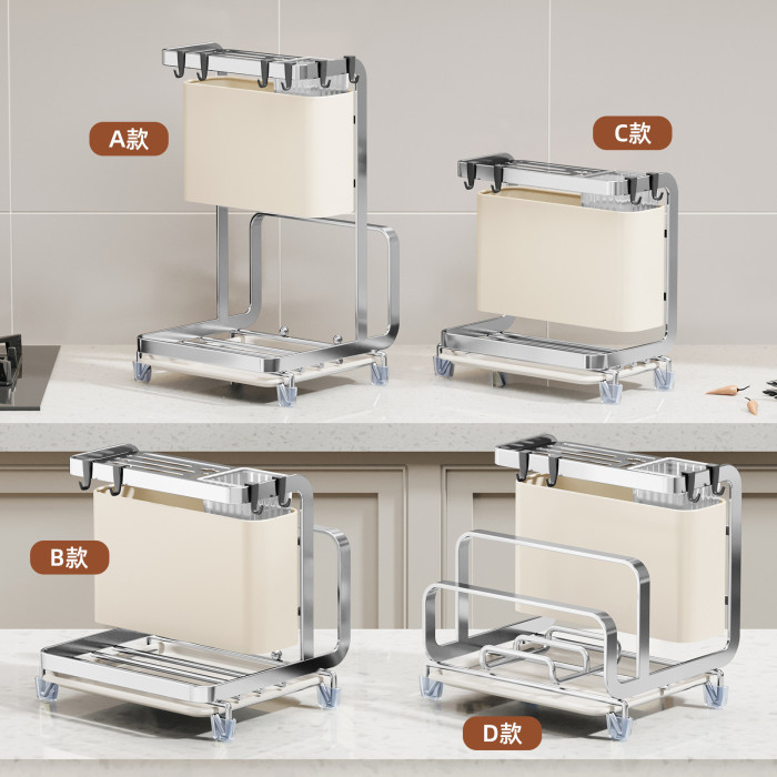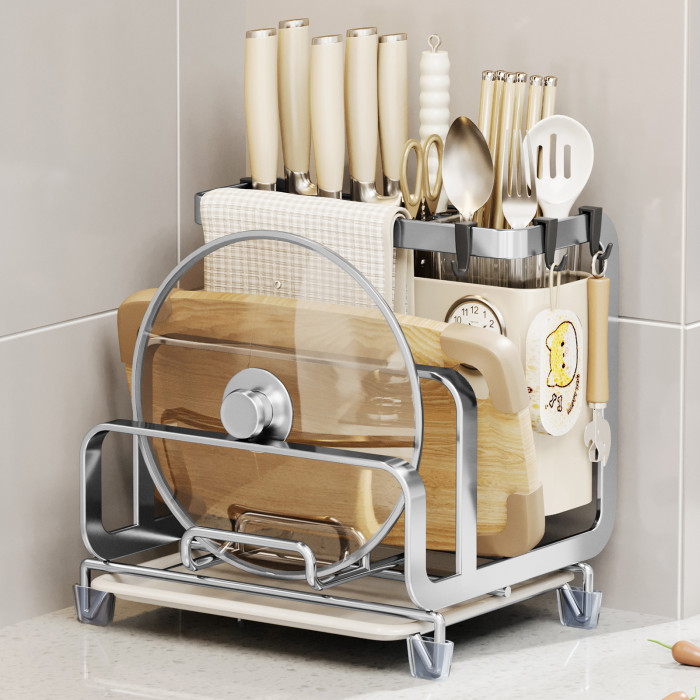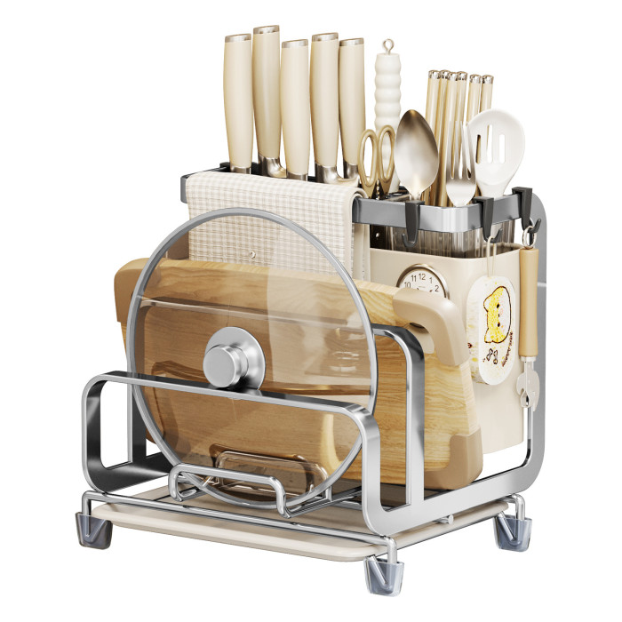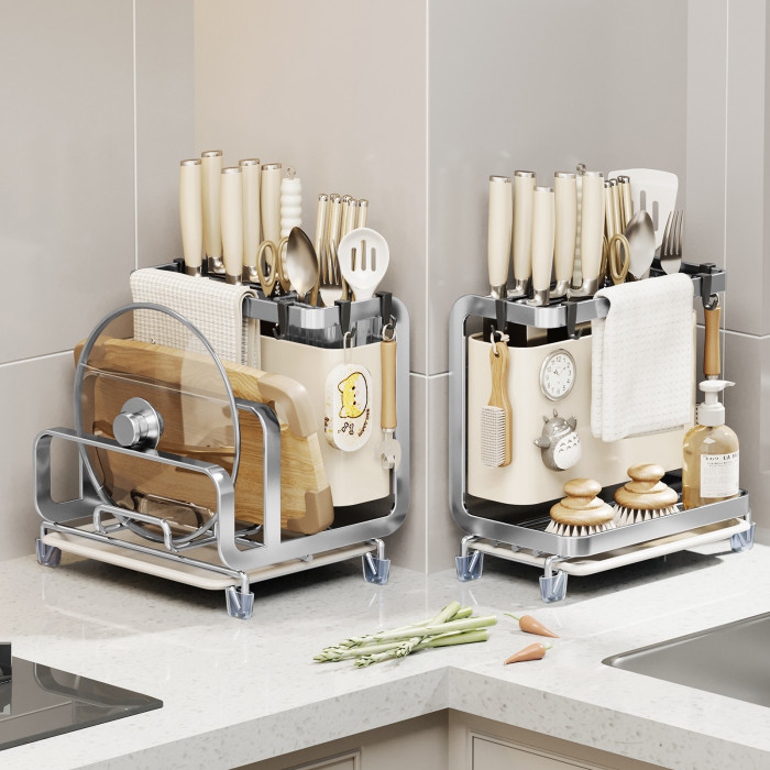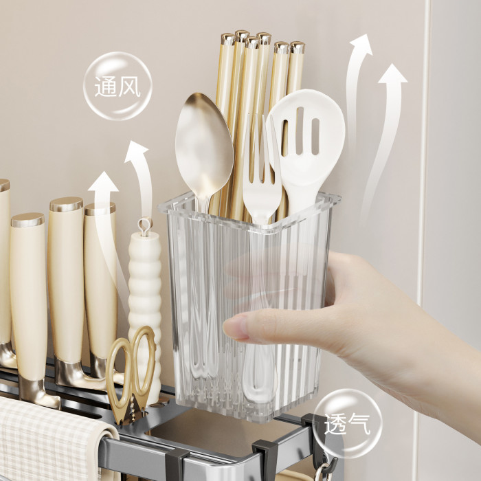 奶油風多功能刀架家用廚房高檔菜板架刀架筷子籠一體式瀝水收納架