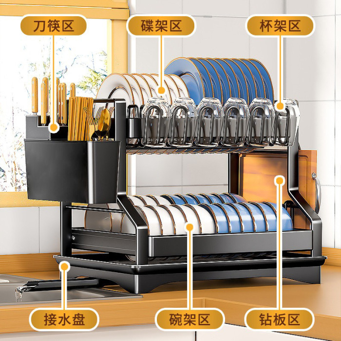 新品廚房多功能碗碟置物架導流水槽碗筷碗盤收納架台面瀝水架