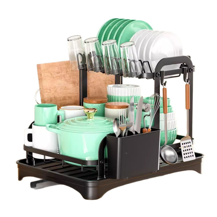 一體碗盤收納架廚房置物架家用瀝水碗碟架多功能碗筷架
