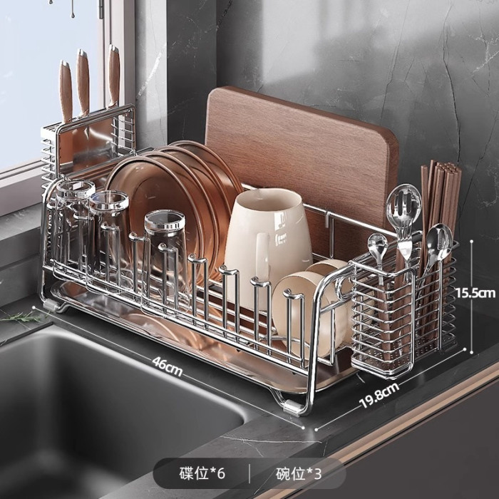 瀝水碗碟架【304不鏽鋼+全套+長46寬20】