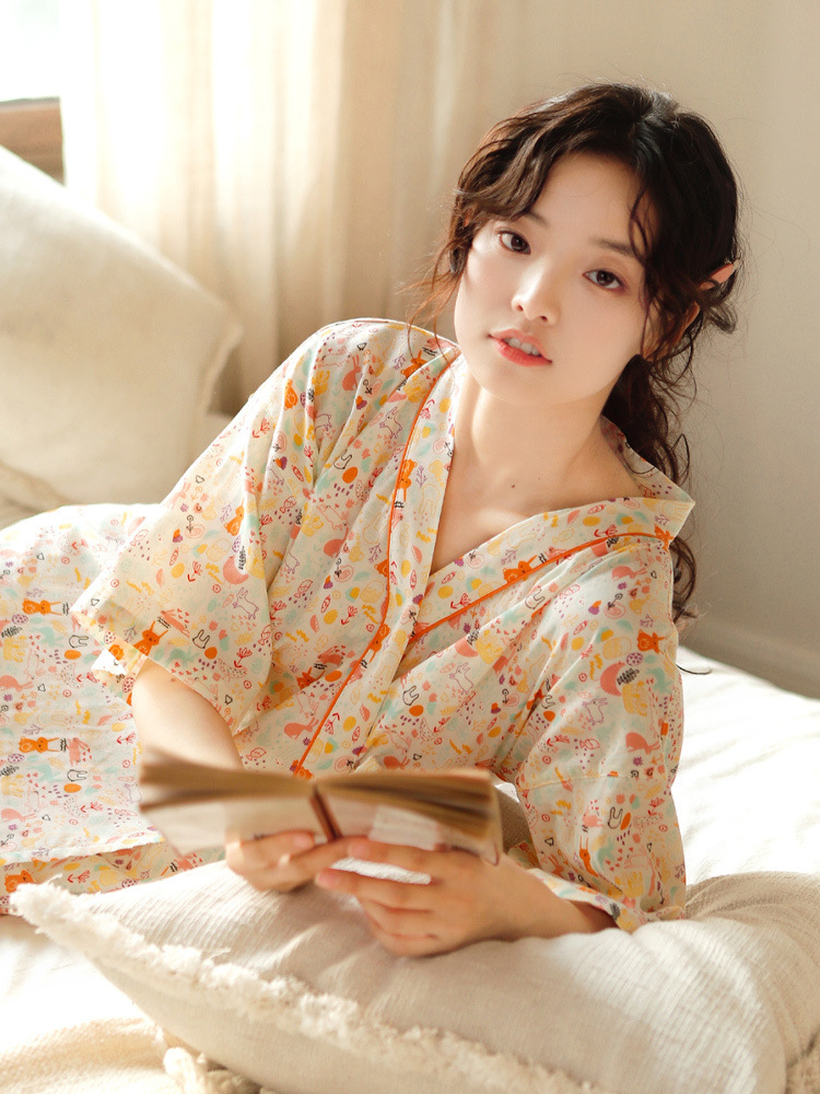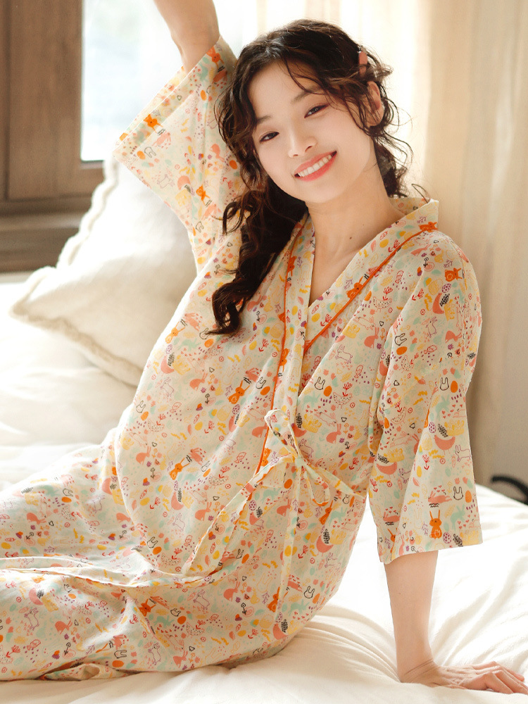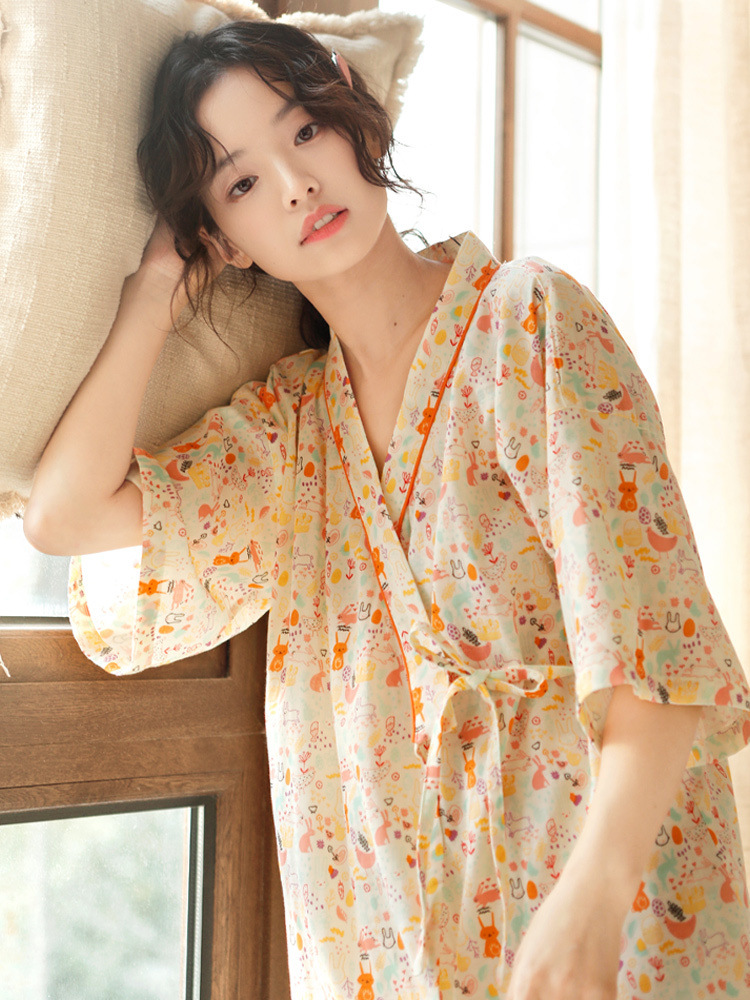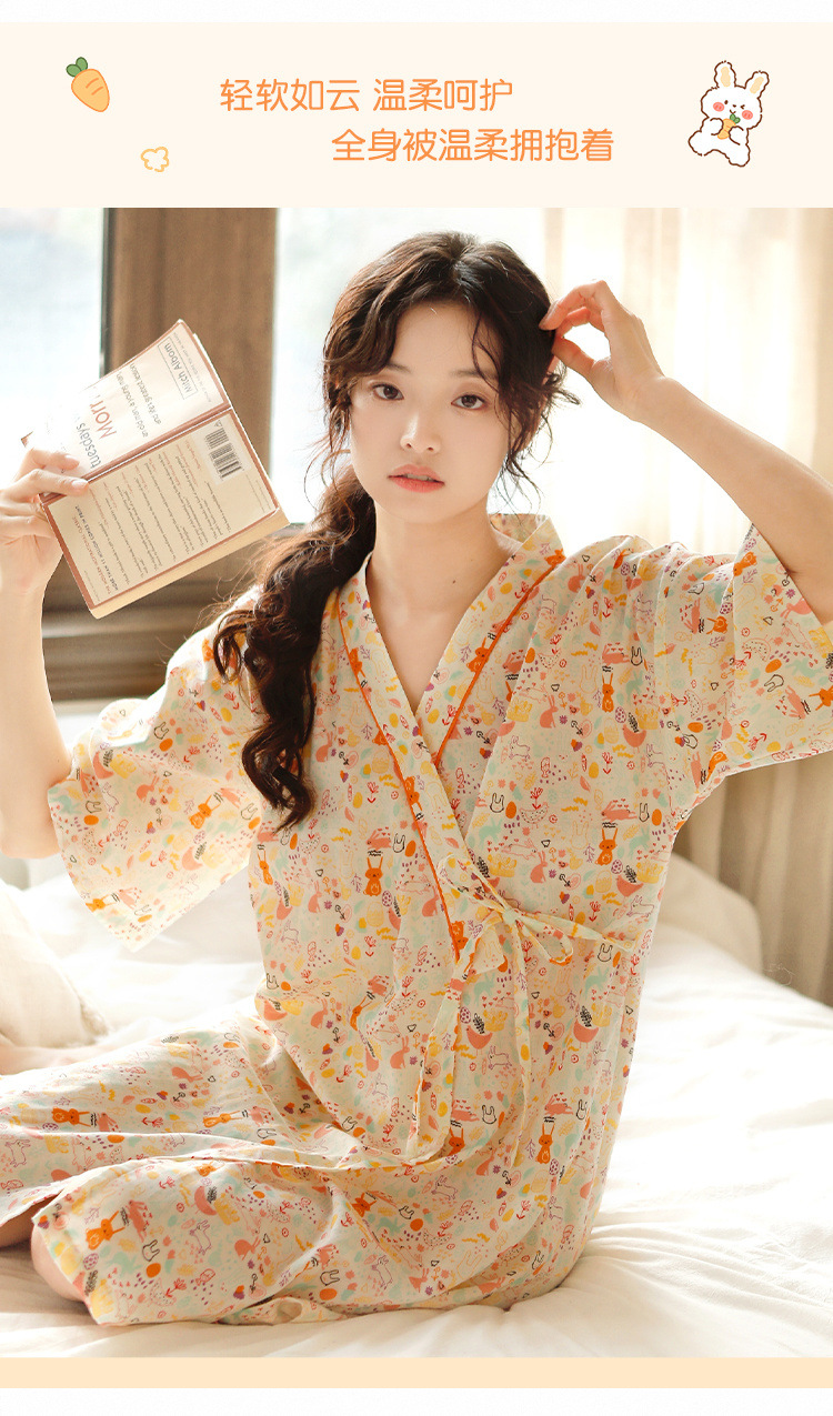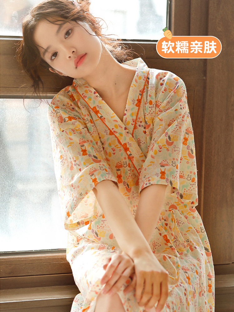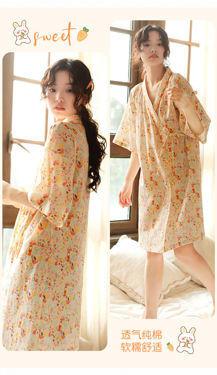 ins睡袍女夏款全棉性感長款甜美日系夏季薄款浴衣袍短袖款家居服