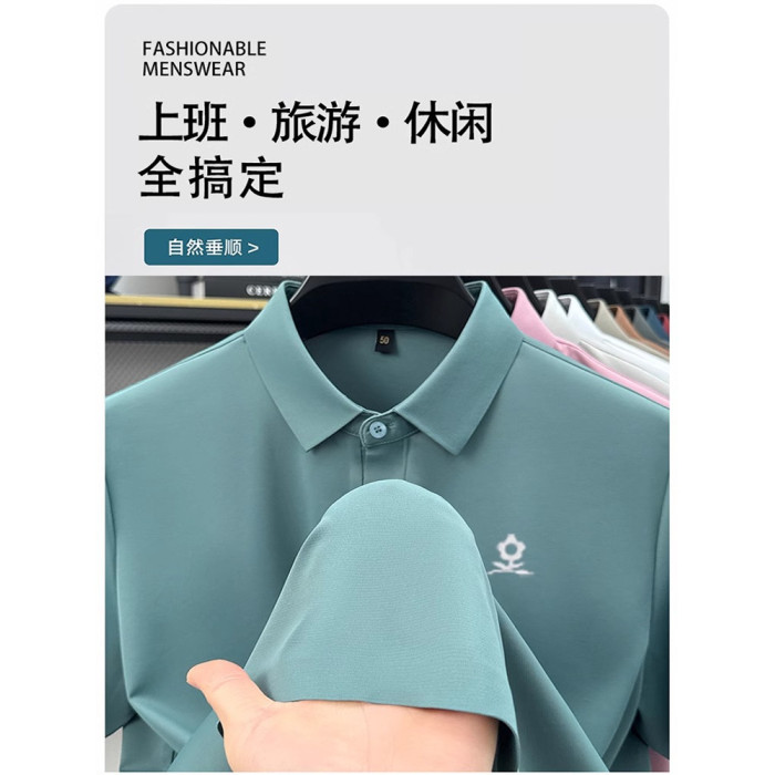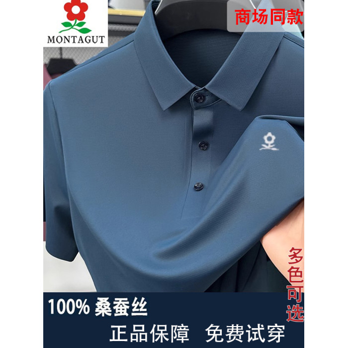 法國夢特嬌翻領桑蠶絲短袖男t恤粉色冰絲薄款高級感商務男polo衫