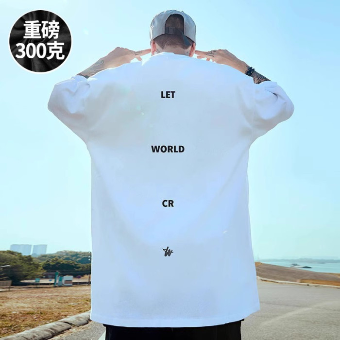 香港潮牌重磅300g高克重純棉短袖男t恤白色夏季短袖寬松大碼上衣