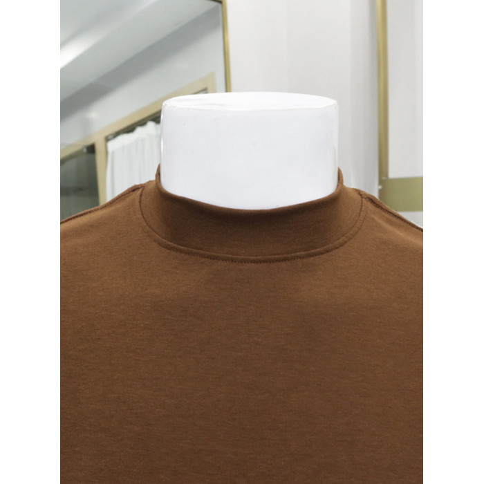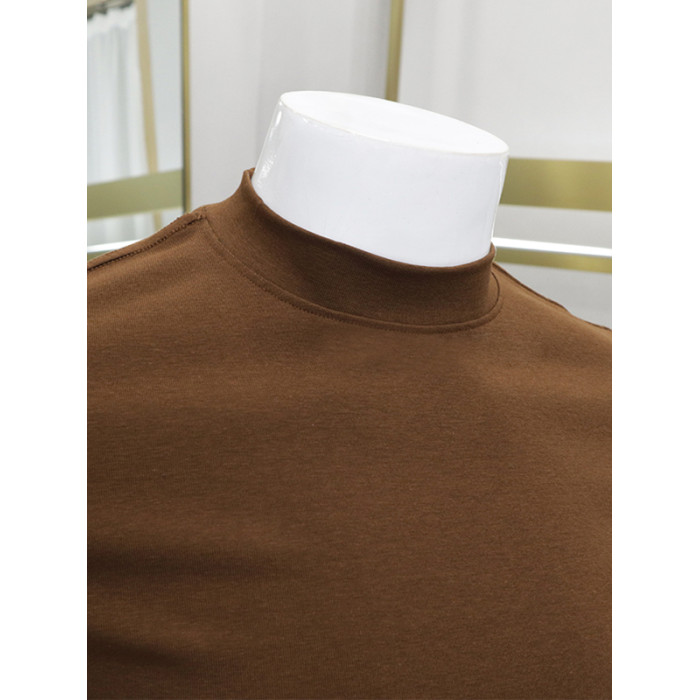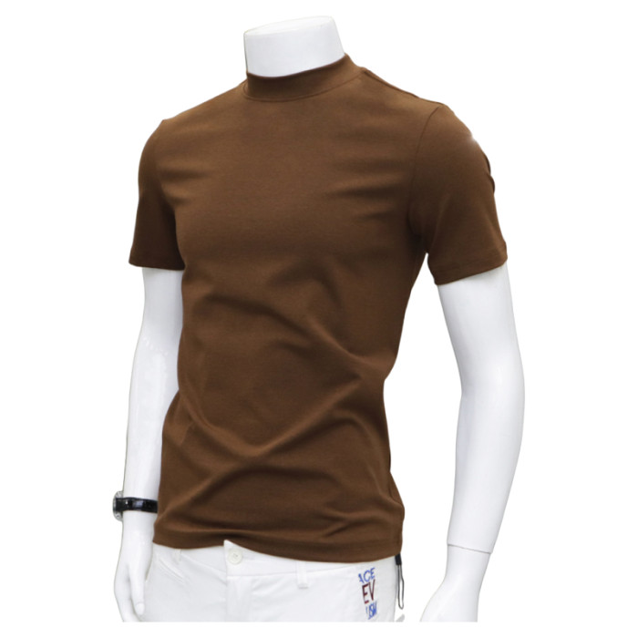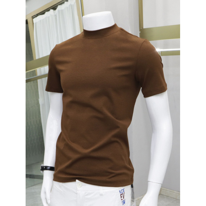 小高領短袖男T恤夏季咖啡色正肩修身2025新款半高領半袖上衣服潮