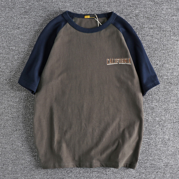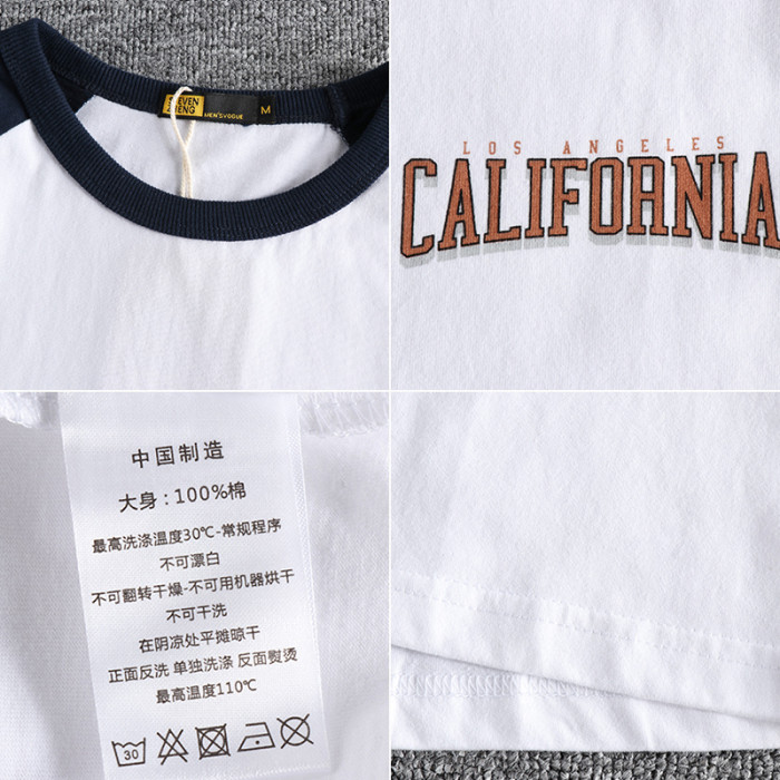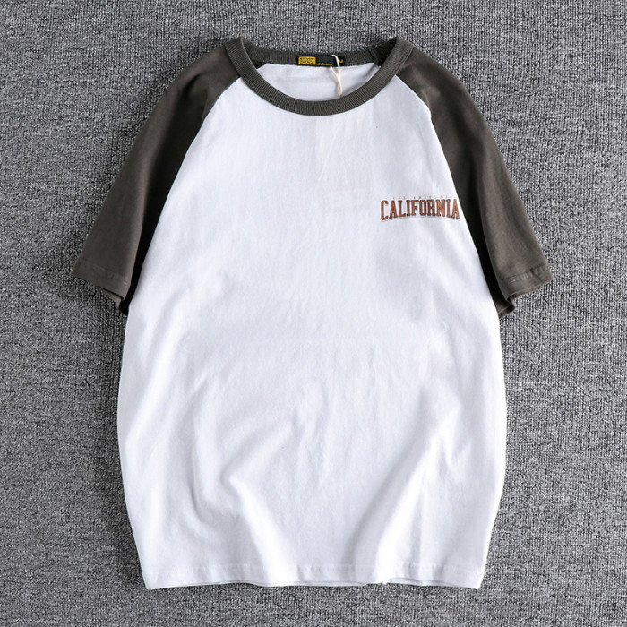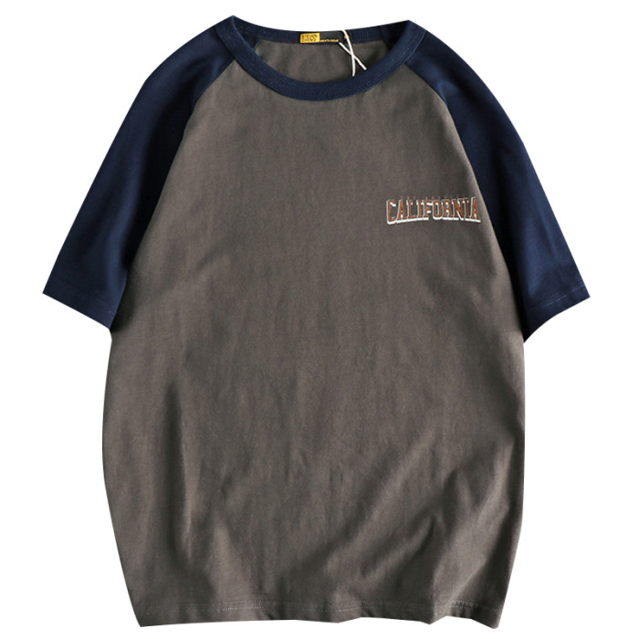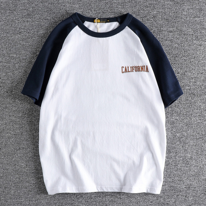 夏季新品日系復古簡約字母印花短袖男T恤 潮流牛角袖撞色半袖衫t