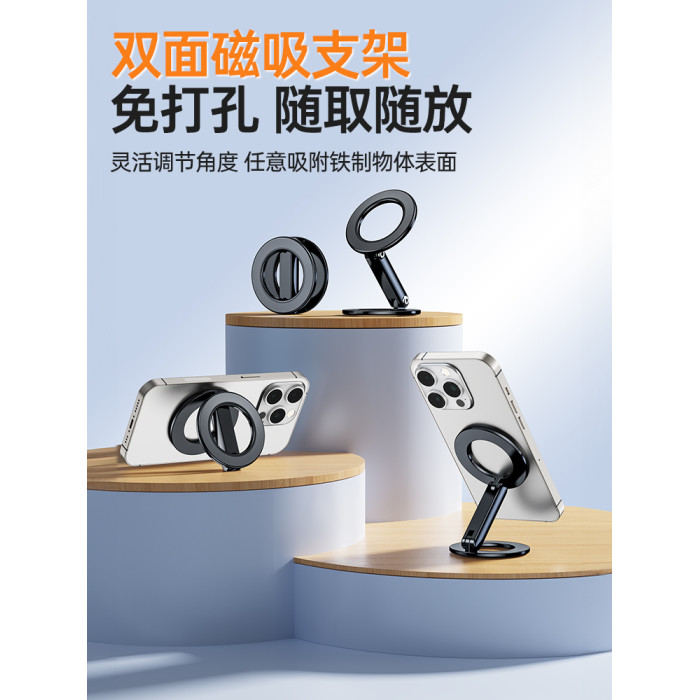 magsafe雙磁吸手機支架跑步機吸附免粘貼雙向兩面吸附底座健身房戶外運動自拍神器廚房衛生間牆壁車用支撐架