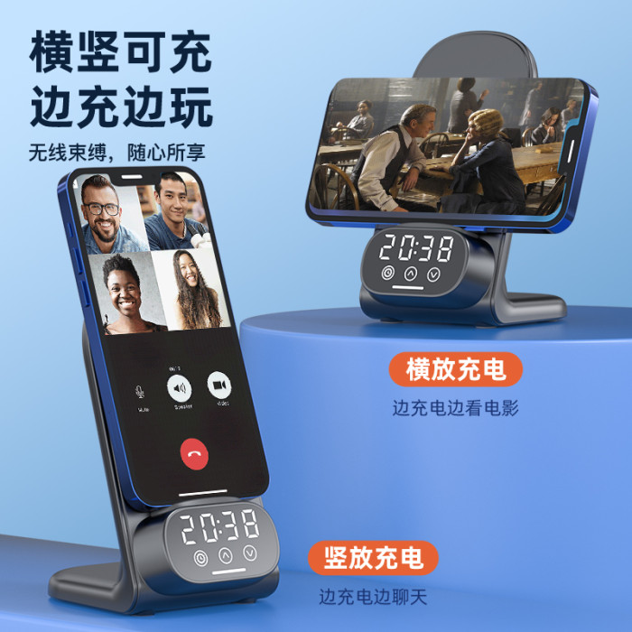 黑色[新款三合一充電支架數碼時鍾顯示]