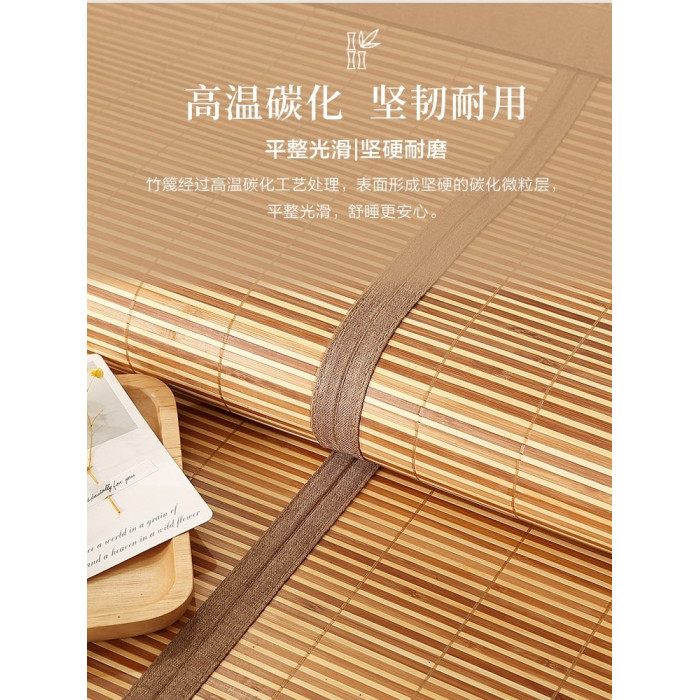 富安娜竹蓆炭化雙面竹蓆夏季家用可折曡涼蓆雙人草蓆蓆子學生床品