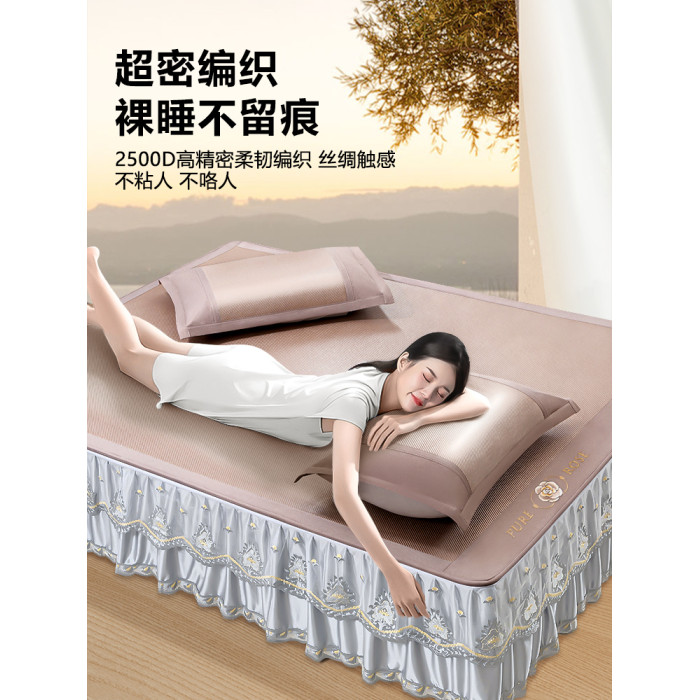 夏天冰絲涼蓆竹蓆2025新款家用床裙床笠款藤蓆a類母嬰級蓆子夏季
