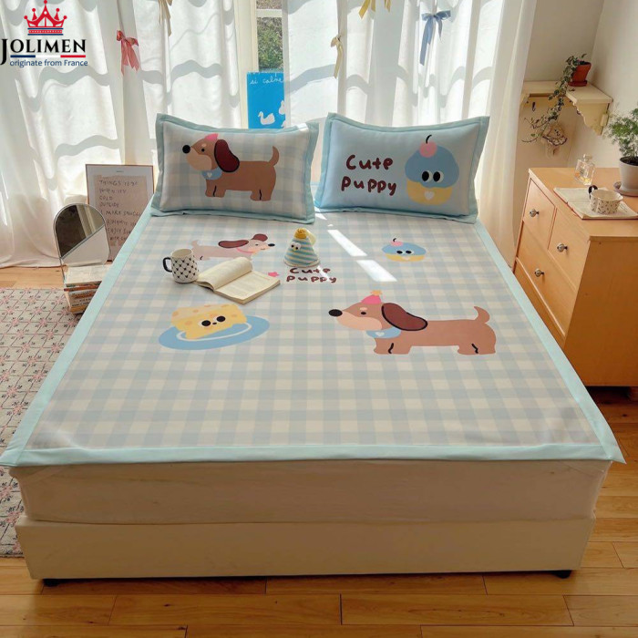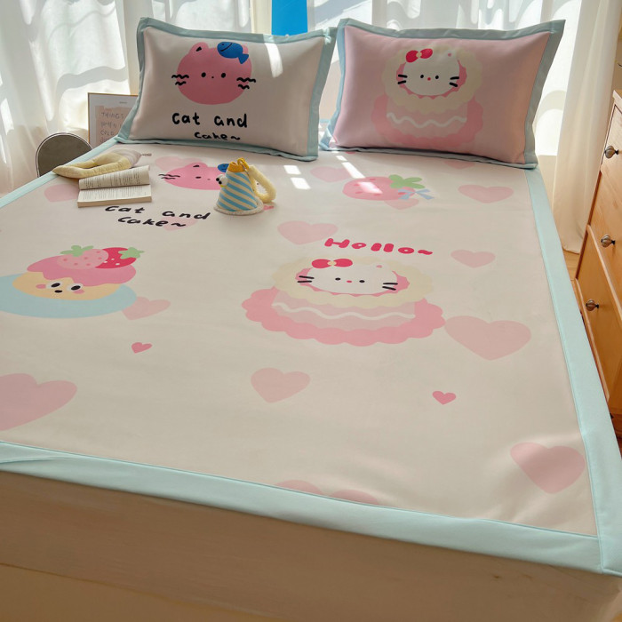 法國A類母嬰級大版印花碳光涼感冰絲涼蓆可機洗水洗可折曡單雙人