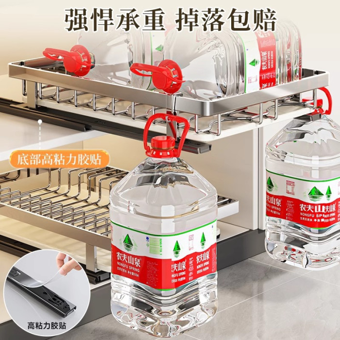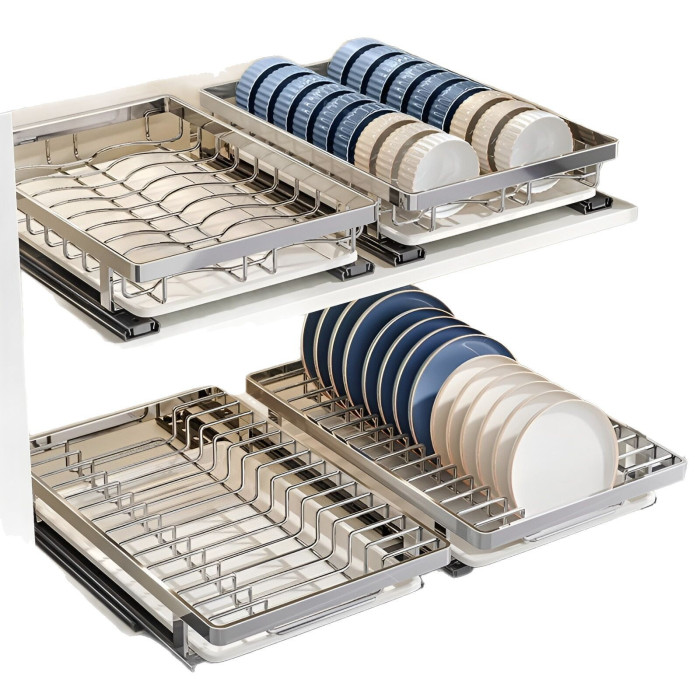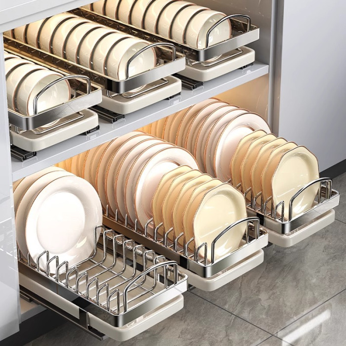 抽拉碗碟收納架櫥櫃不鏽鋼廚房碗盤架拉籃抽屜式盤子瀝水置物架子