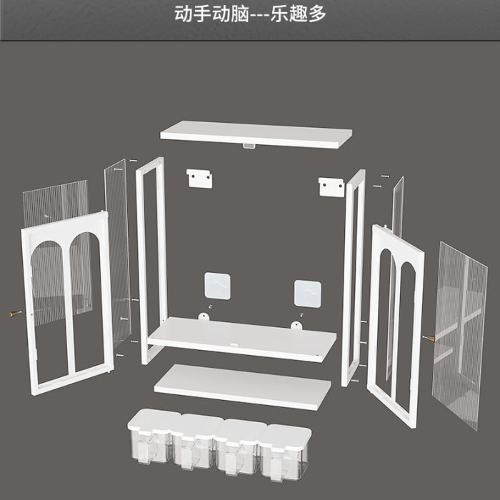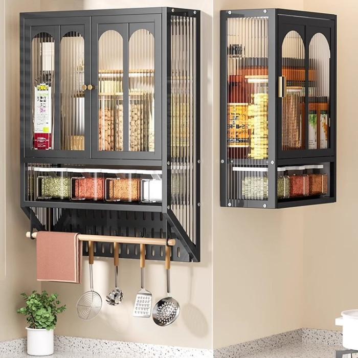 壁掛式免打孔調味品收納廚房調料置物架帶門防塵多功能牆上儲物櫃