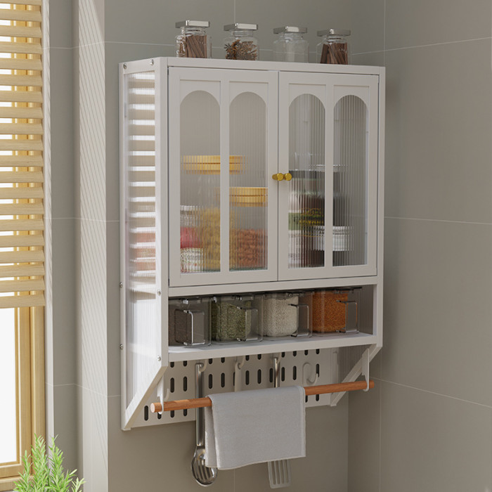 雙層【白色-40CM雙開門壁掛櫃-4調料盒款-洞洞板款】