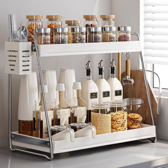 不鏽鋼廚房調料架家用台面調味品雙層收納架多功能鹽調味罐置物架