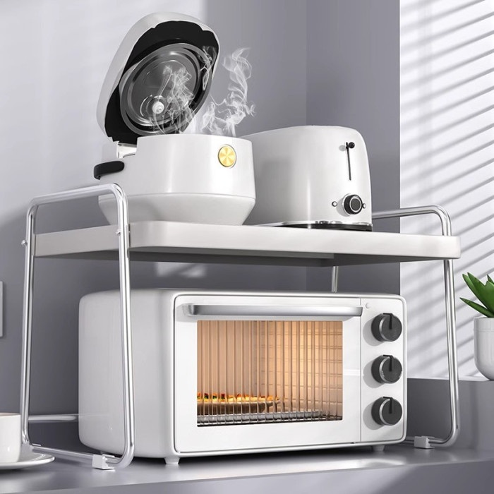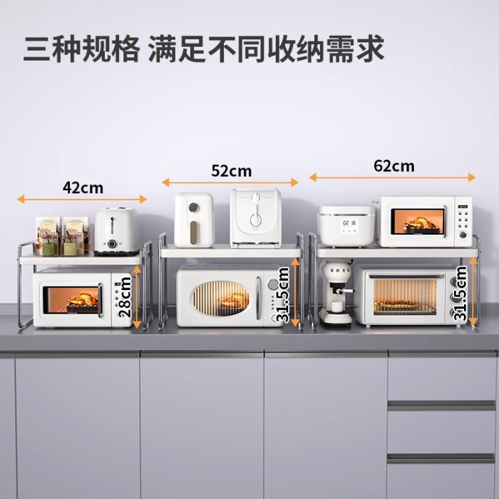 不鏽鋼微波爐置物架台面電器烤箱電飯煲鍋抽拉式廚房置物架收納架