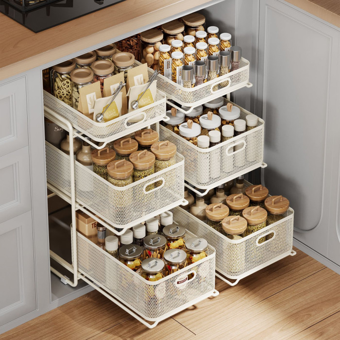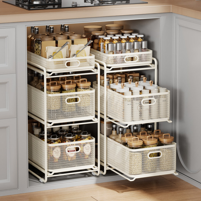 【嬭白】菱形大號雙層抽拉籃置物架