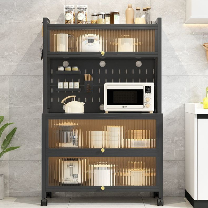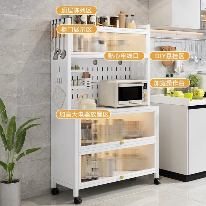 廚房餐邊櫃碗櫃落地多層收納櫃防塵帶門鍋具碗碟微波爐烤箱置物架