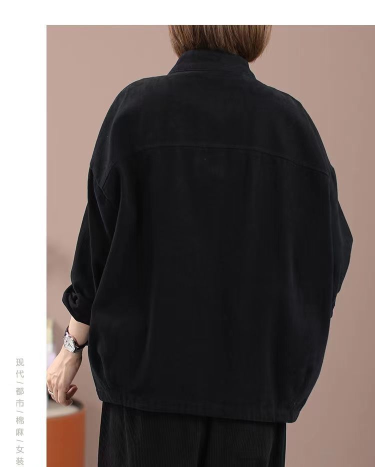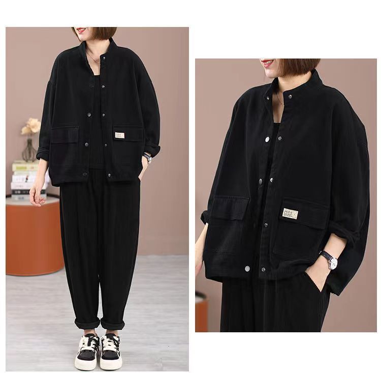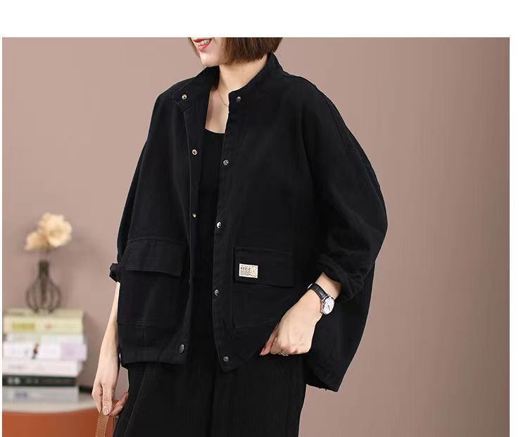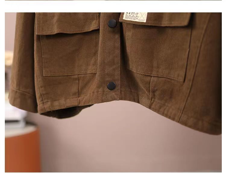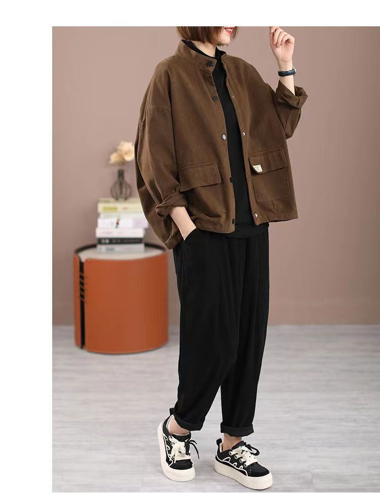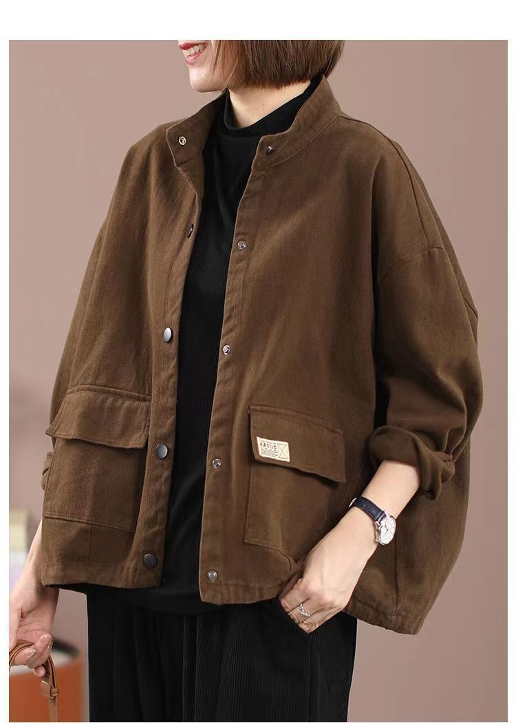 純棉加絨加厚工裝外套女秋冬大碼寬松短款開衫休閒立領夾克棒球服