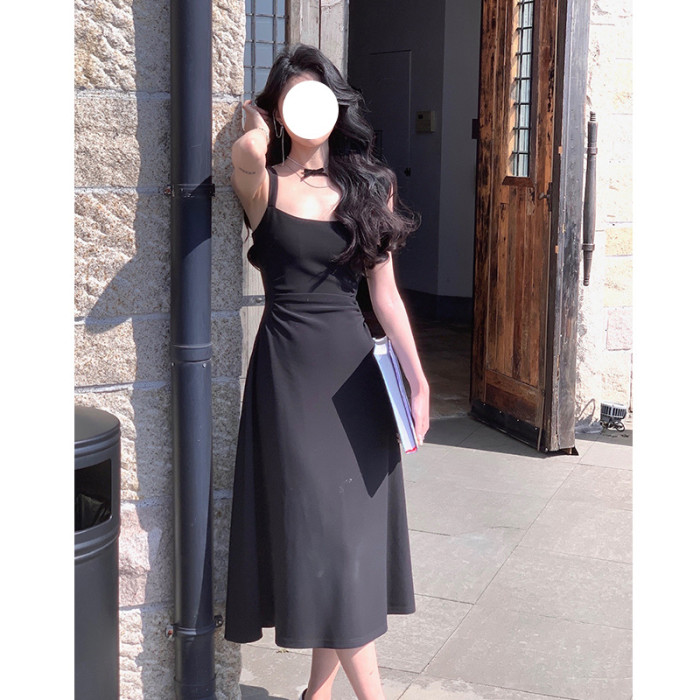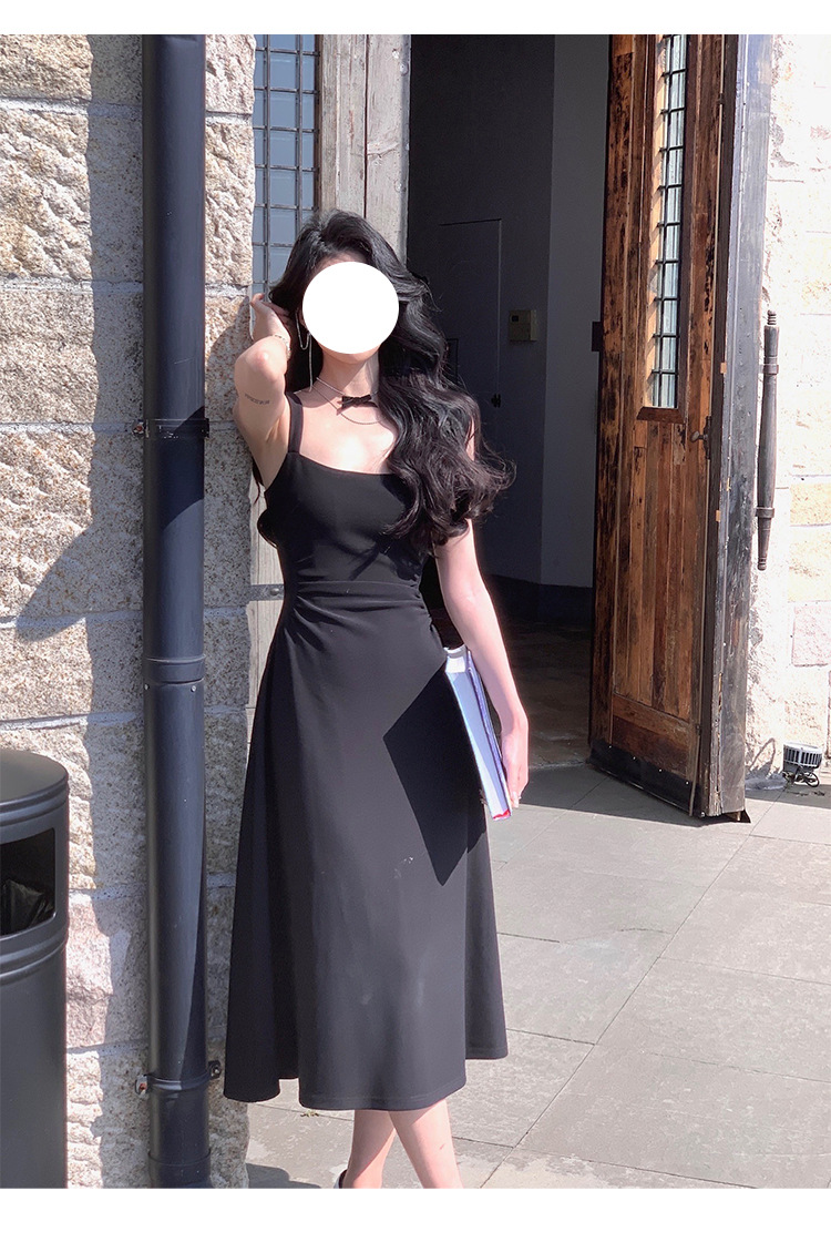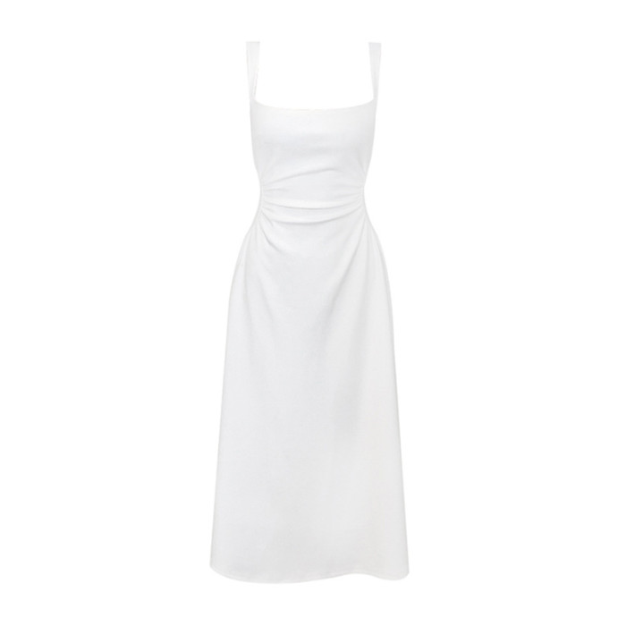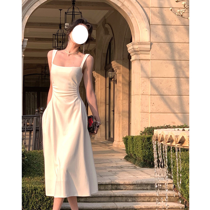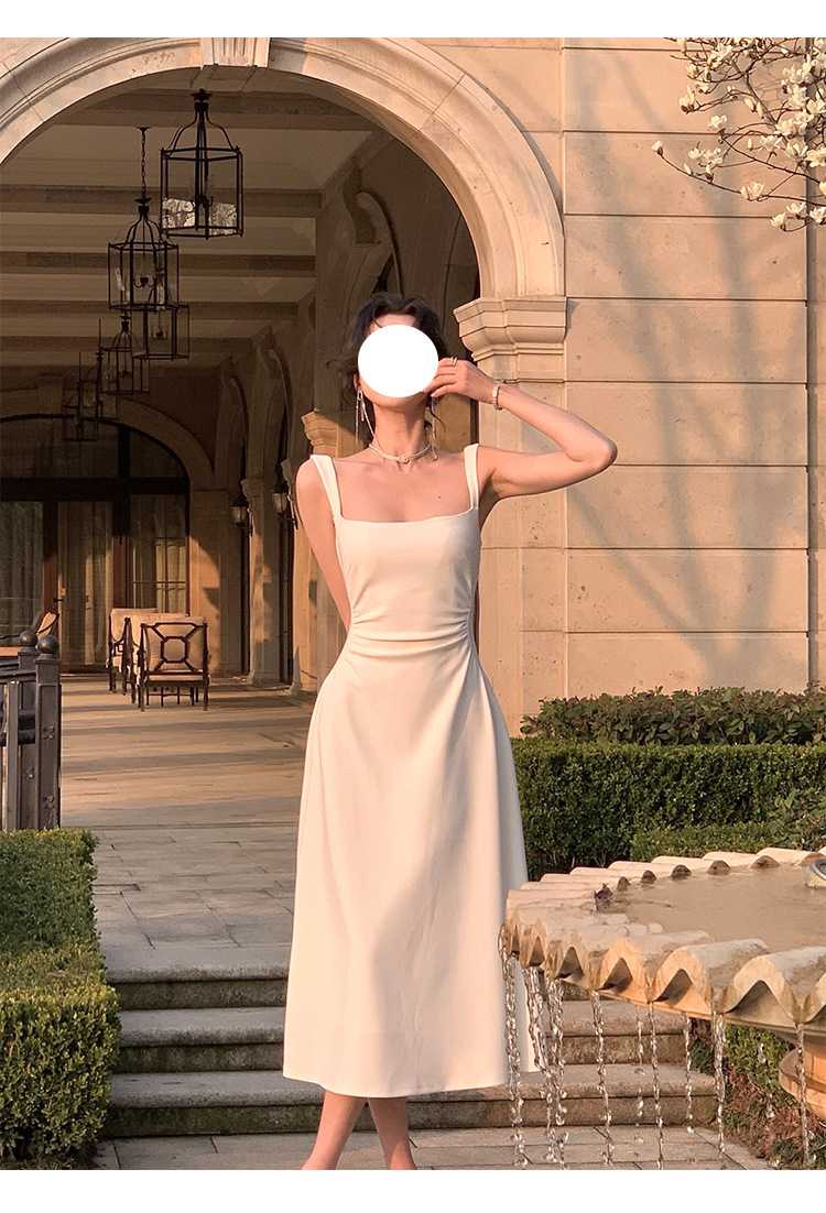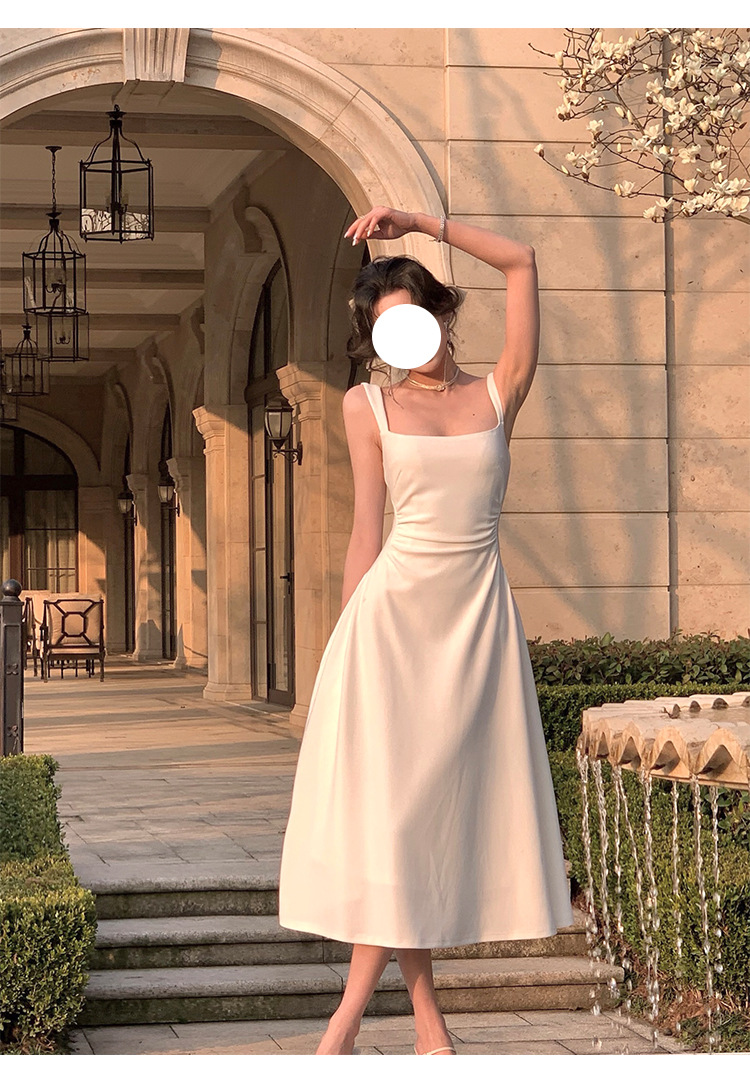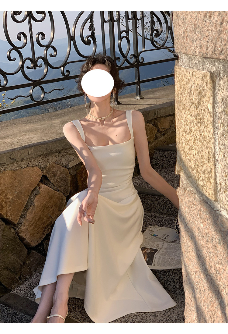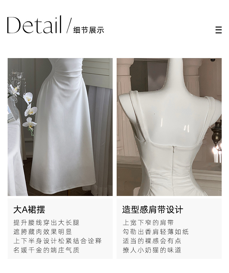 白色吊帶連衣裙女新款a字裙法式收腰小衆設計感氣質禮服裙長裙子