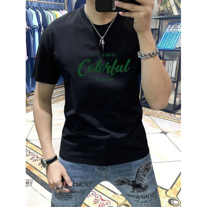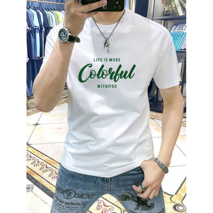 男士純棉t恤短袖字母上衣男體恤衫修身顯瘦休閒透氣男T恤夏季新款