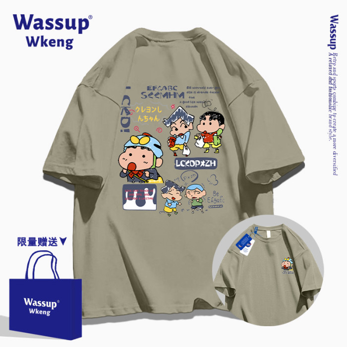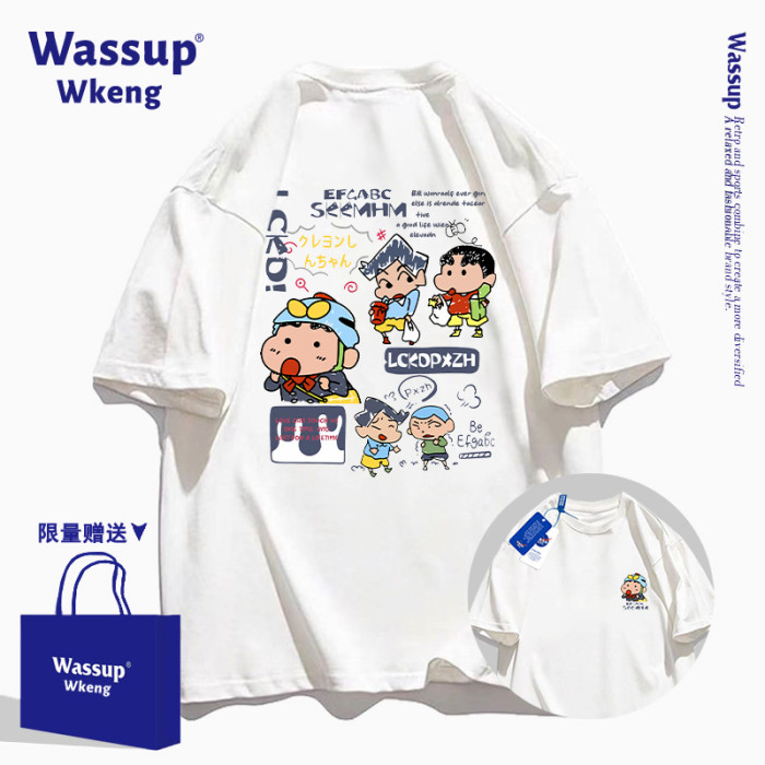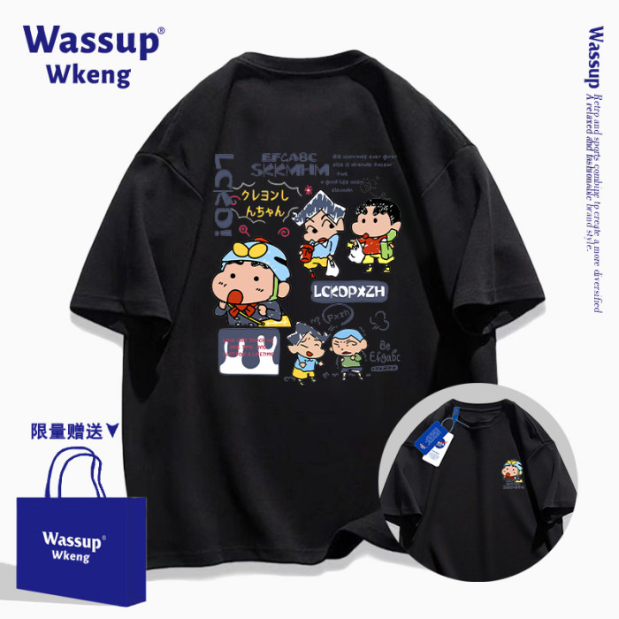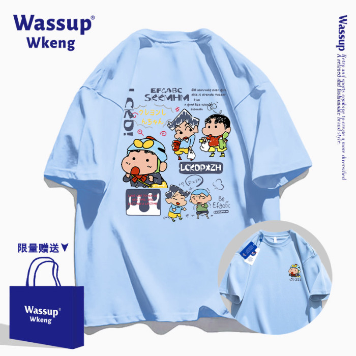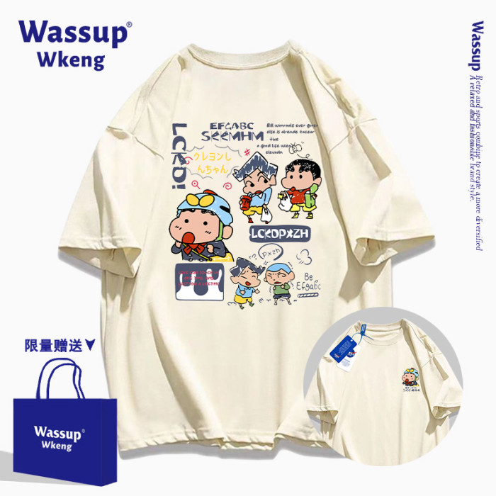 wassup聯名蠟筆小新短袖男t恤2025新款夏季卡通潮流寬松純棉上衣