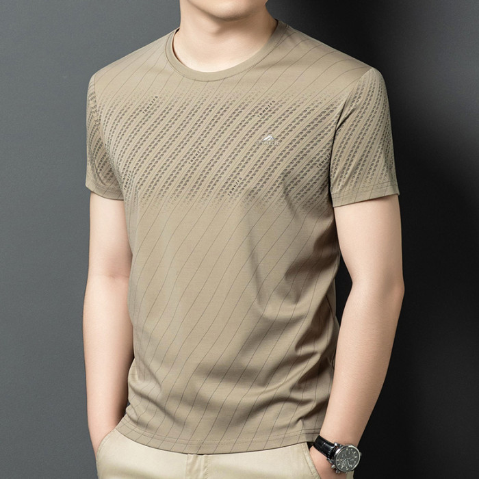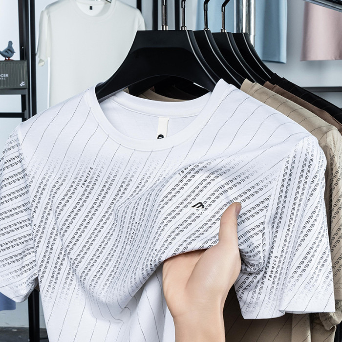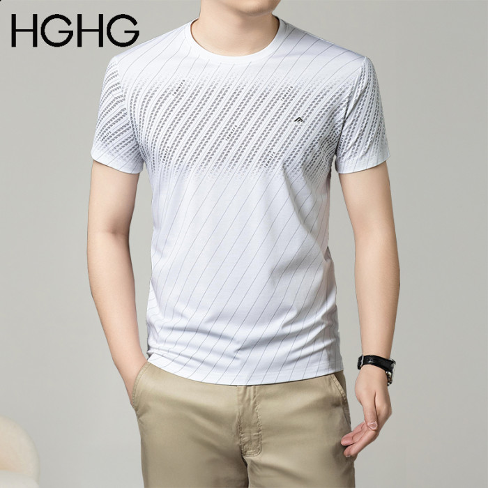 HGHG短袖t恤男2025新款夏季圓領冰感透氣純棉正肩白色冰絲男t恤男
