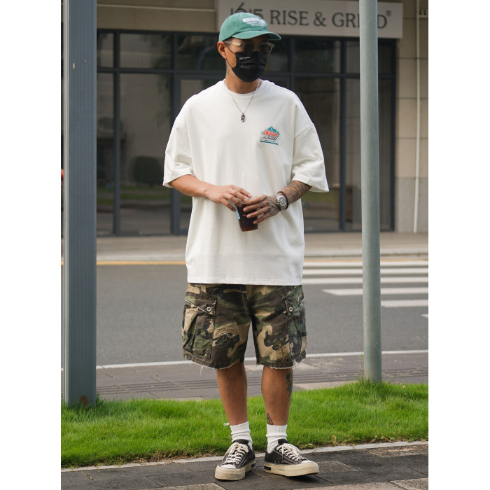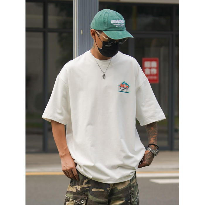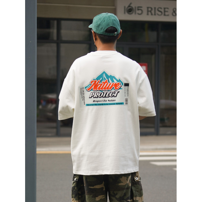 Propcell日系復古重磅265G山系趣味印花短袖男夏季休閒寬松男T恤