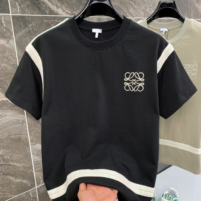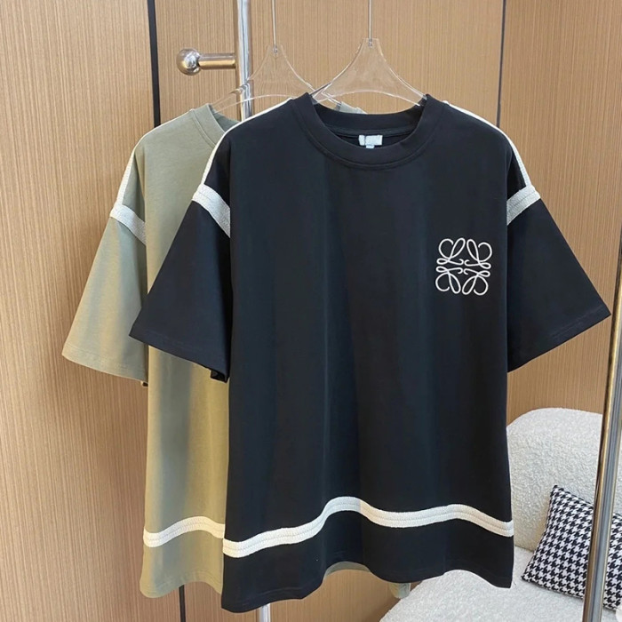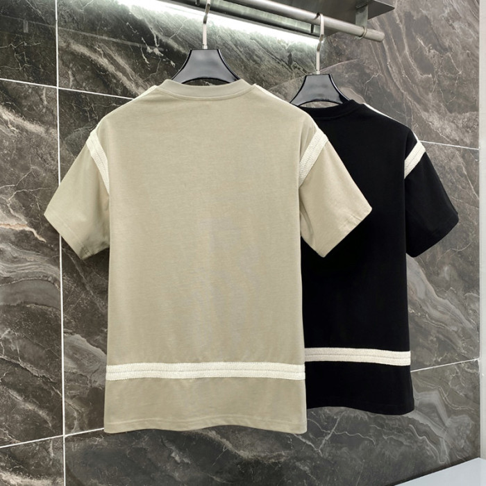 歐洲站美式潮流羅家拼色條紋男t恤2025新款短袖高級歐貨輕奢男裝