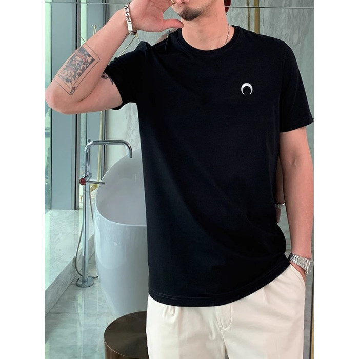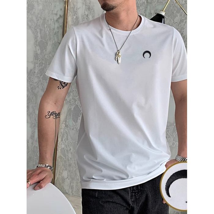 歐洲站高級潮牌短袖男T恤刺綉月亮小標輕奢絲光棉修身簡約純色潮t