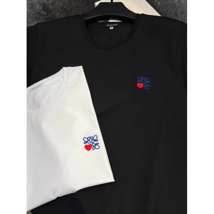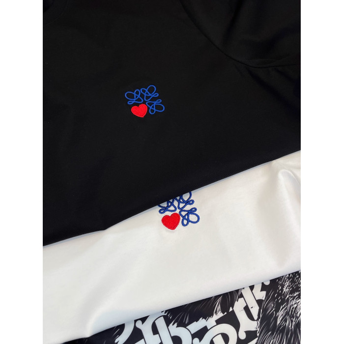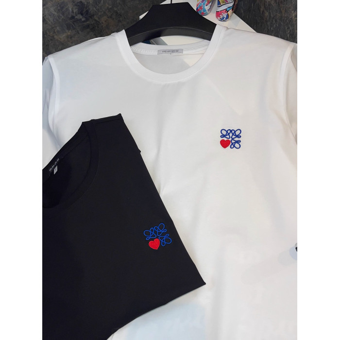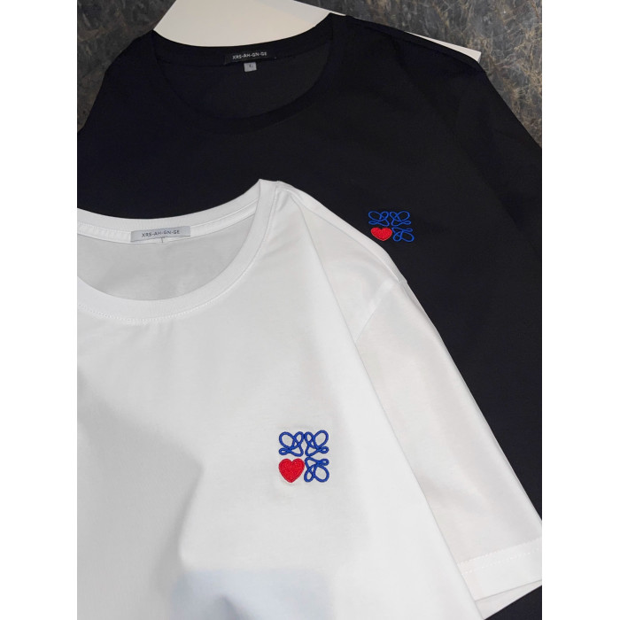 歐洲站高級短袖男T恤潮牌夏季薄款絲光棉品牌愛心刺綉情侶裝