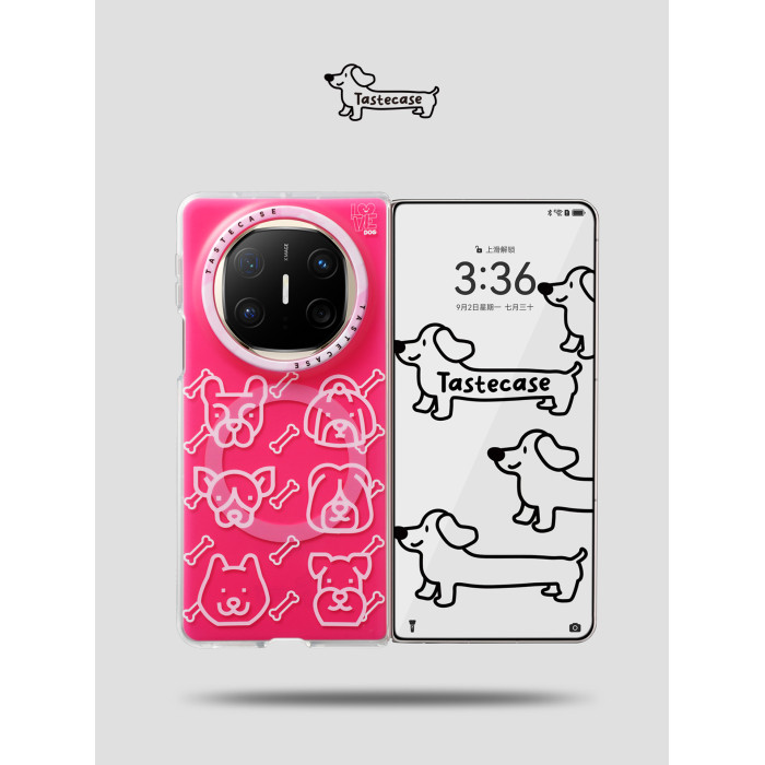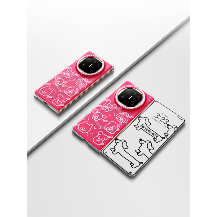 Tastecase粉色狗狗磁吸手機殼適用於華爲Mate X6/X5典藏版折曡磨砂保護殼新款原創可愛小狗高級磁吸手機支架