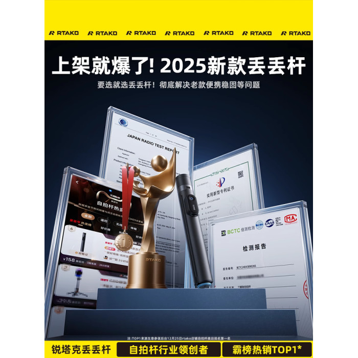 銳塔克2025丟丟桿自拍桿落地三腳架一體式手持自拍神器可攜式支架