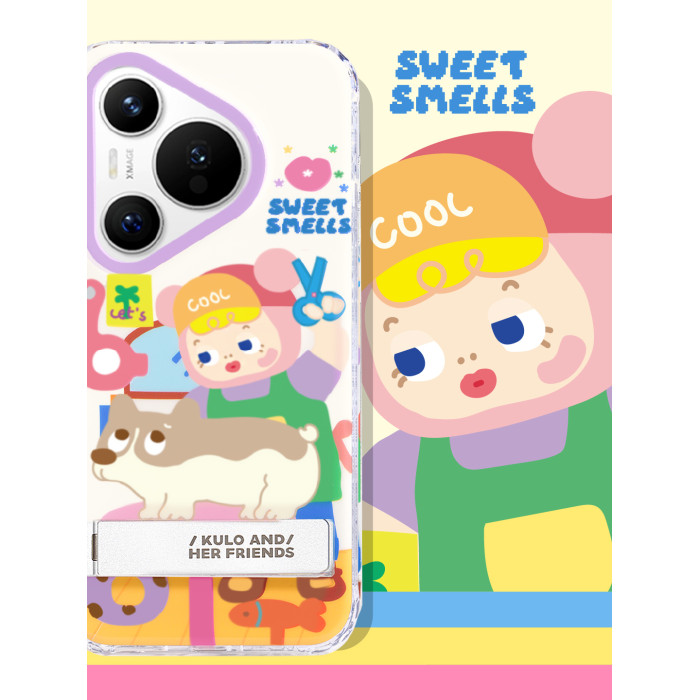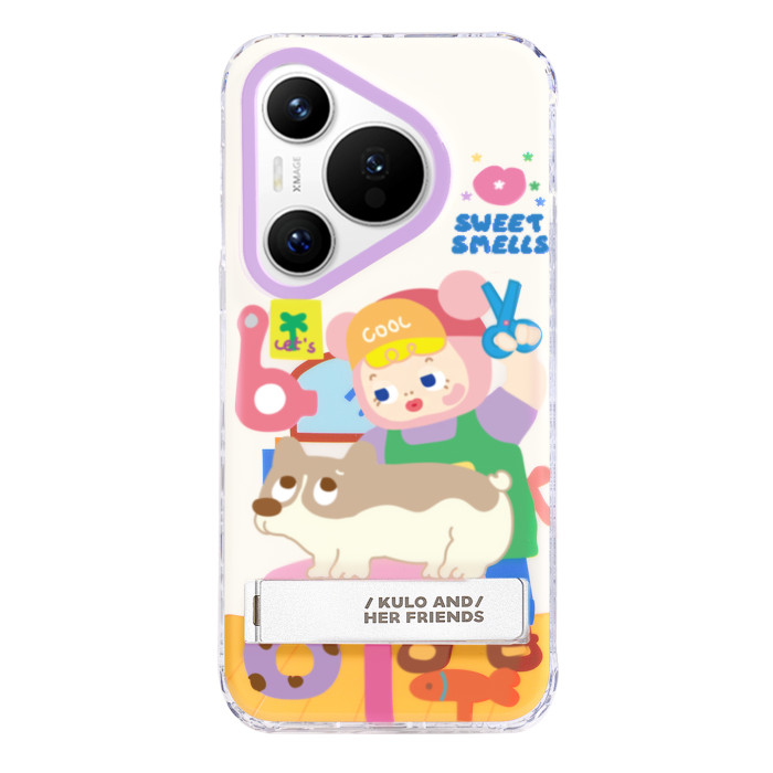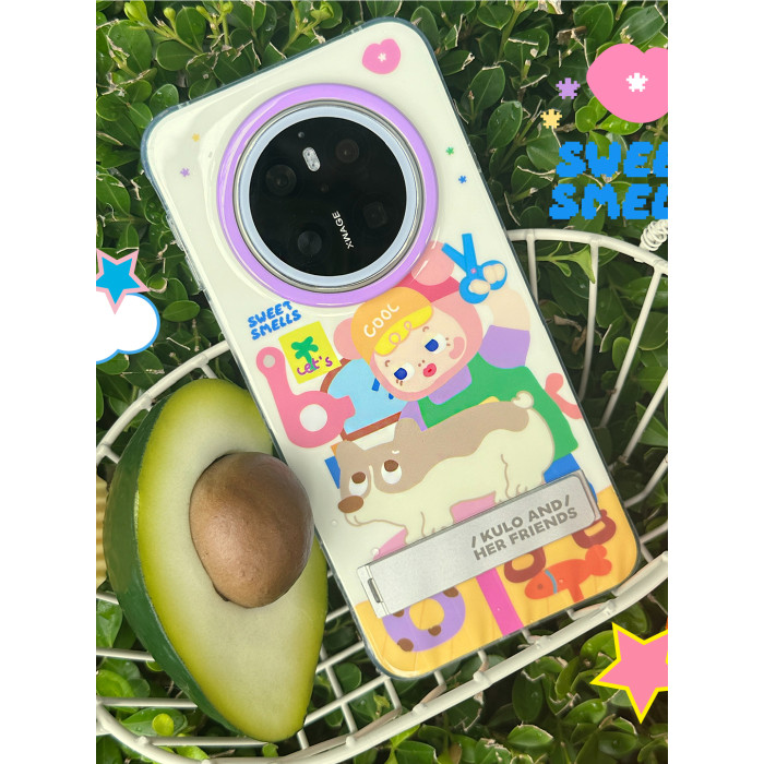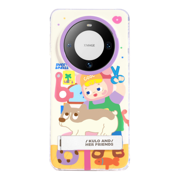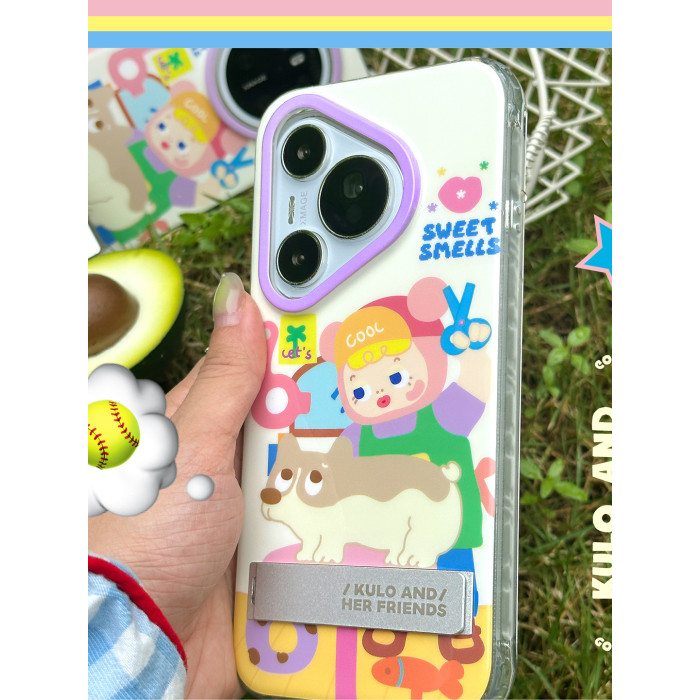 PaPaPa製造侷 kulo剪狗毛可愛插畫原創隱藏支架適用於華爲mate70手機殼P70P帶手機支架華爲mate60pro保護套