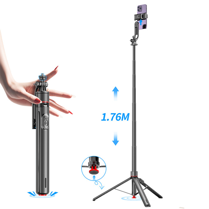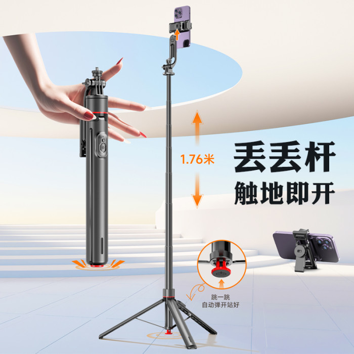 【丟丟桿】CYKE手機自拍桿三腳架2025新款多功能一體旅遊可攜式手持補光支架防抖落地拍攝360度旋轉vlog神器