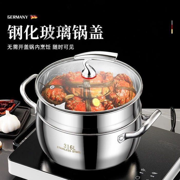 不鏽鋼湯鍋一體家用蒸鍋蒸煮耐高溫煲湯電磁爐瓦斯爐通用飛鳥蒸鍋