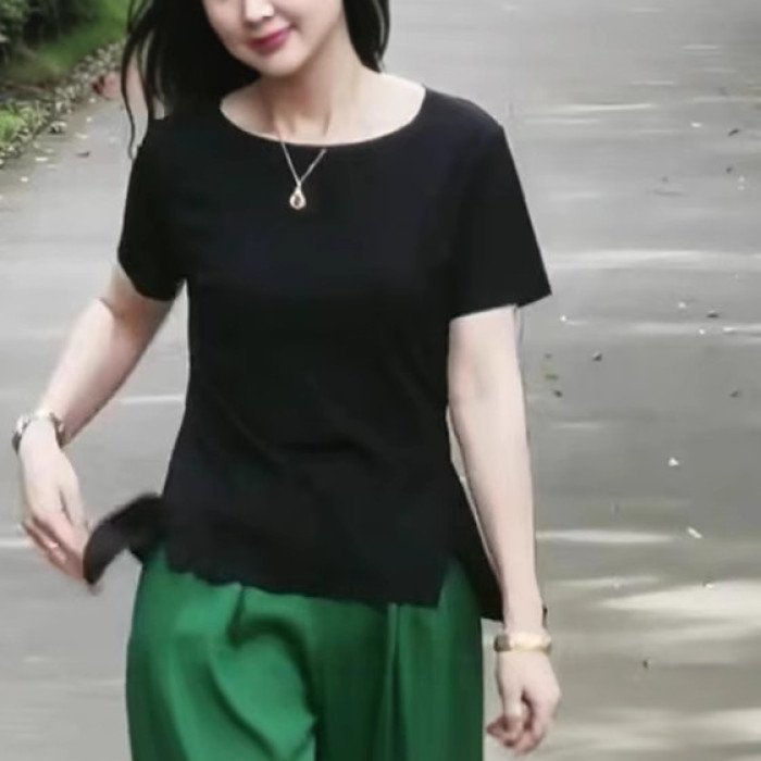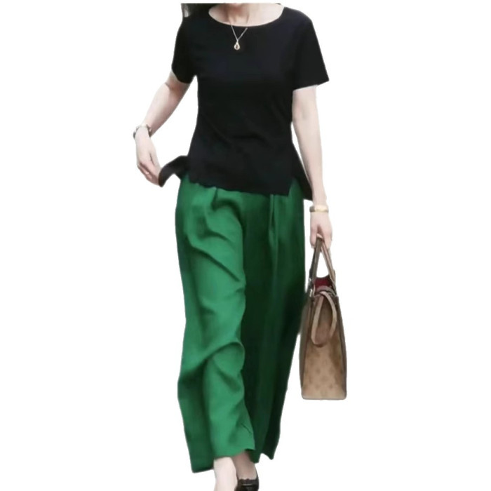 黑色叉叉上衣+天絲香墨綠褲(整套)