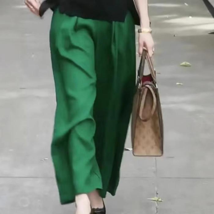 天絲香墨綠褲