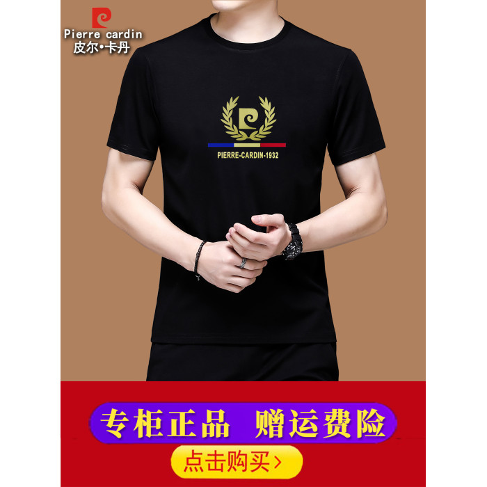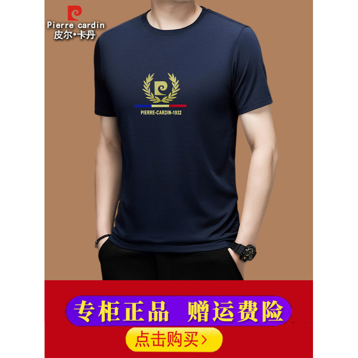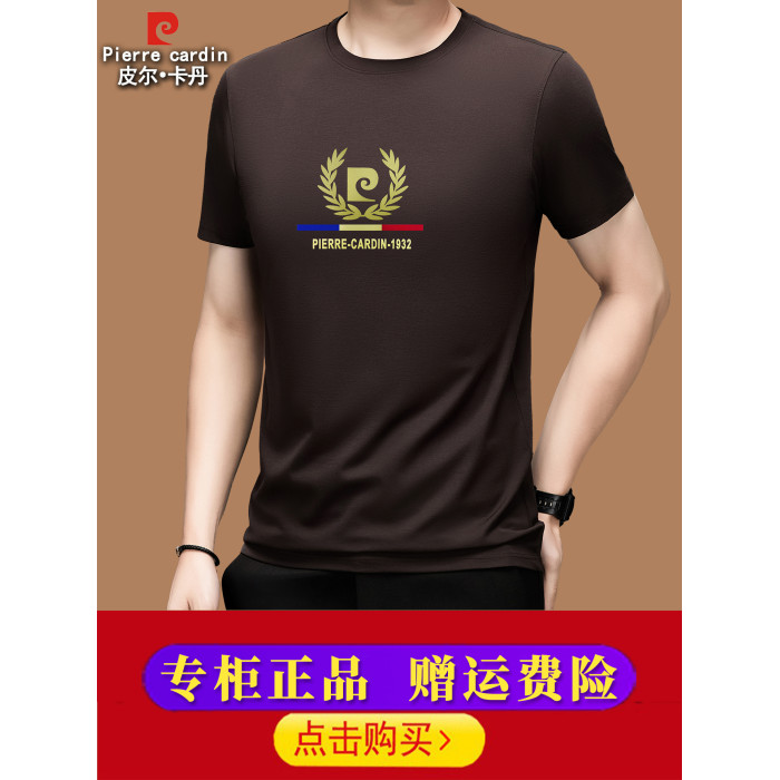 皮爾卡丹桑蠶絲男士t恤男夏季新款圓領冰絲半袖2025新款短袖男T恤