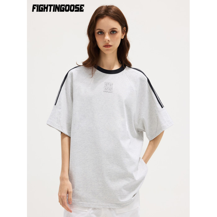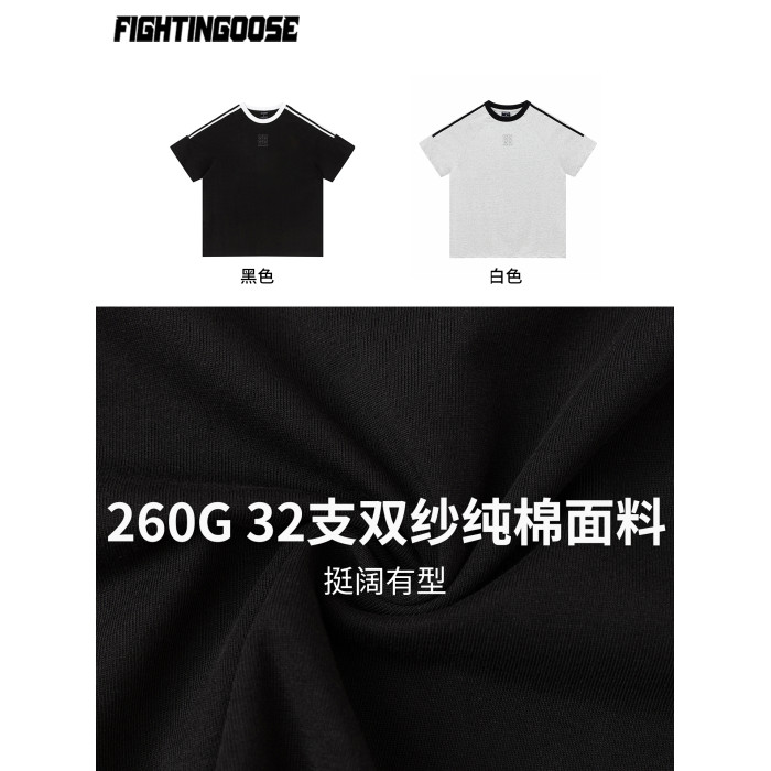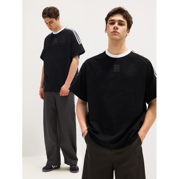 短袖男t恤2025新款男生穿搭夏三條杠美式運動球衣情侶國潮寬松T