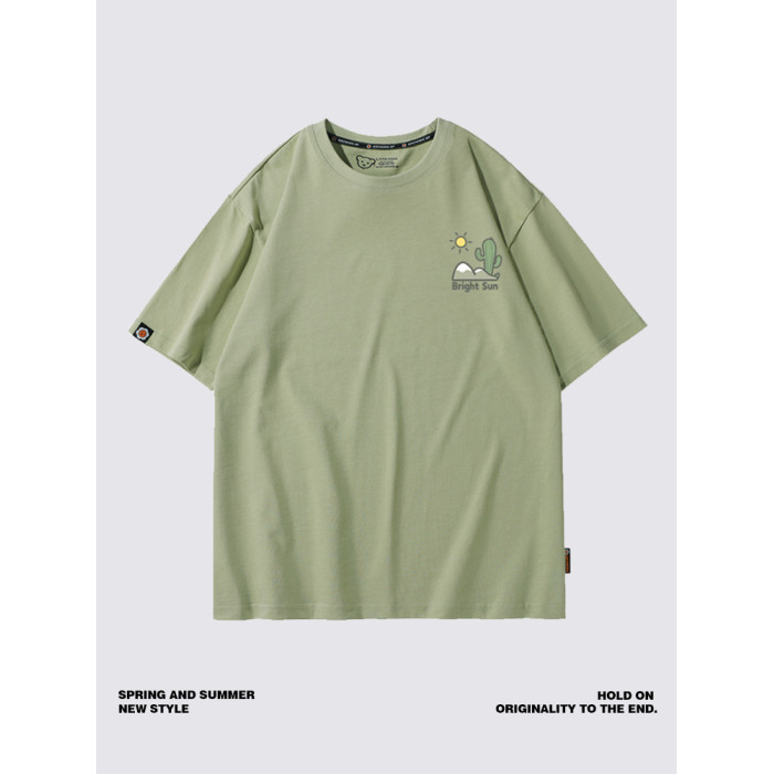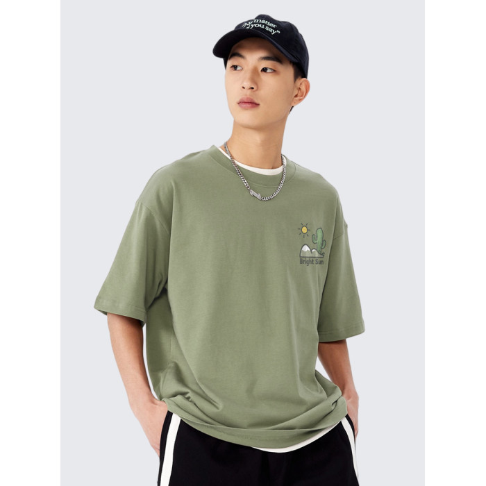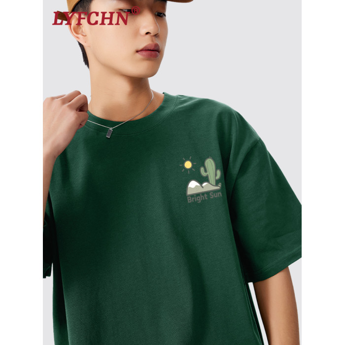 墨綠色短袖男t恤2025新款夏季男裝半袖重磅純棉寬松男士體恤衫潮