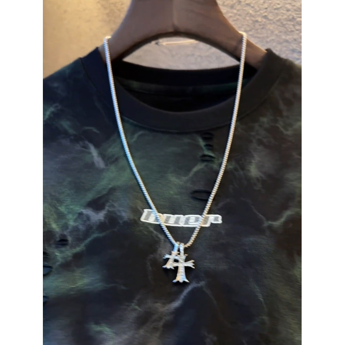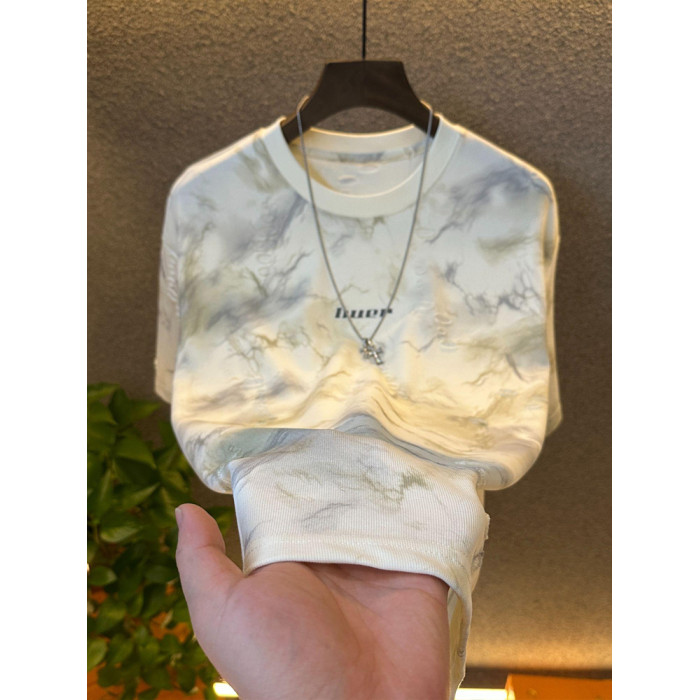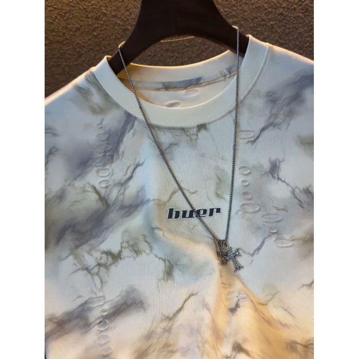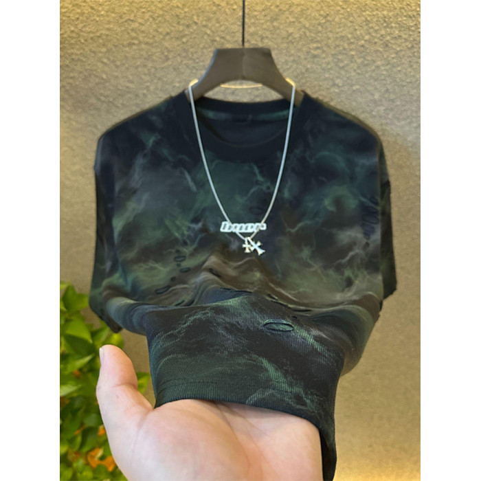 潮牌新款破洞設計感短袖男T恤圓領日常休閒百搭半袖體恤上衣男款