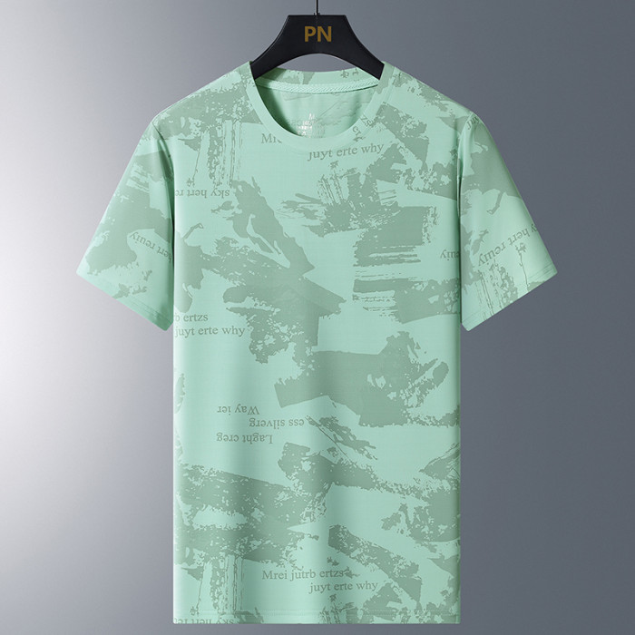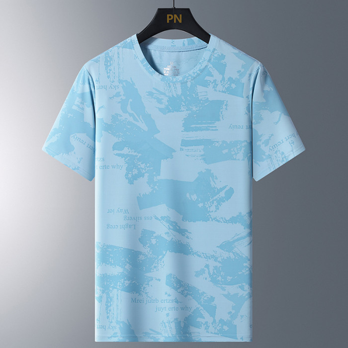 夏季男T恤上衣休閒百搭速乾圓領薄款涼感透氣寬松短袖