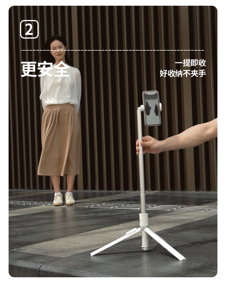 1.6米白色【自動杆】自動彈開收納★可變焦遙控器★雙琯鋁合金三腳架