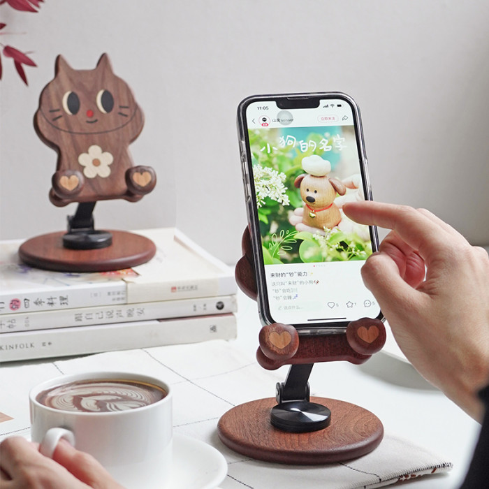 山捨| 可愛貓狗手機支架可折曡旋轉調節辦公室桌面mini平板支架