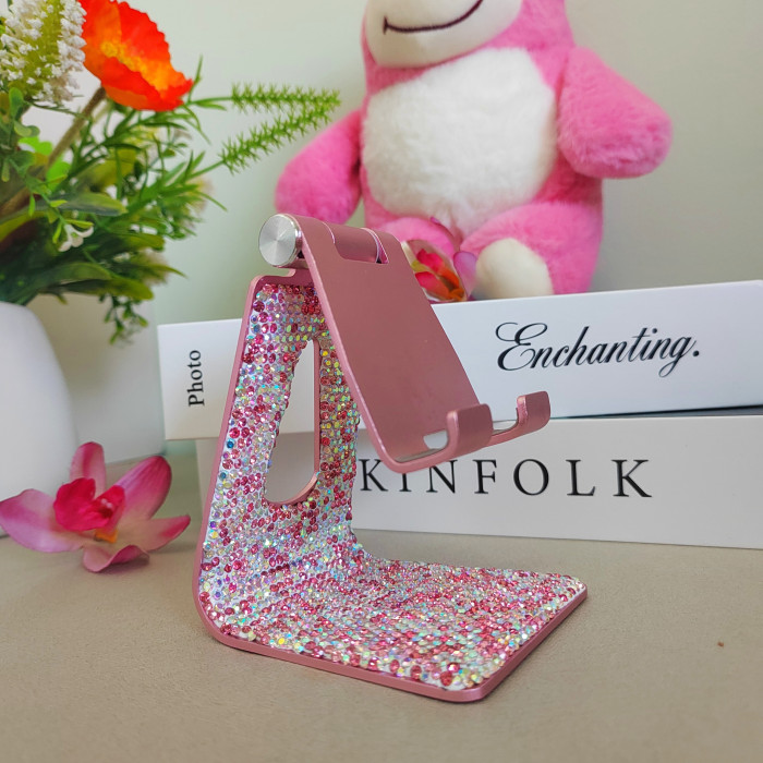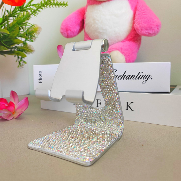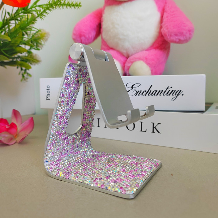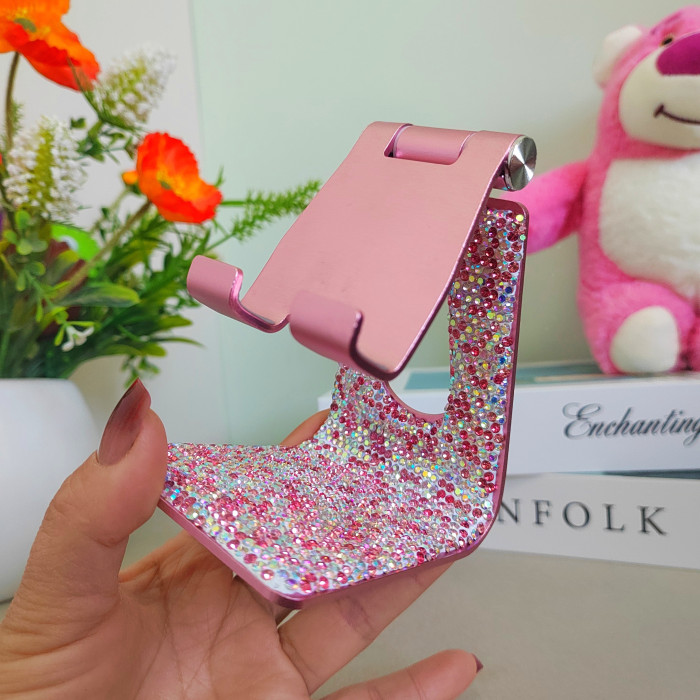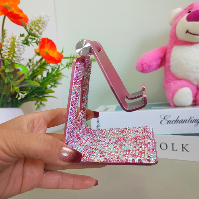 鑲鑽手機支架桌面懶人追劇可攜式折曡可調節金屬五金支架創意禮品